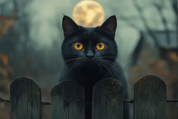 Vászonkép Fekete macska és telihold a háttérben Nr s41123
