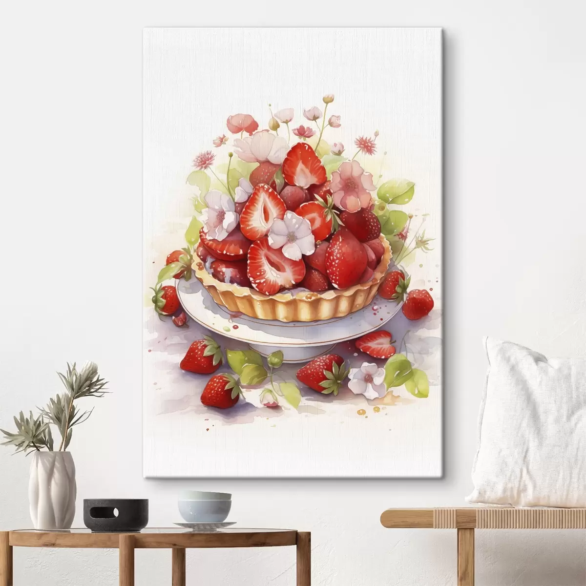 Vászonkép Epres torta, akvarell, virágos, virágos Nr s41177