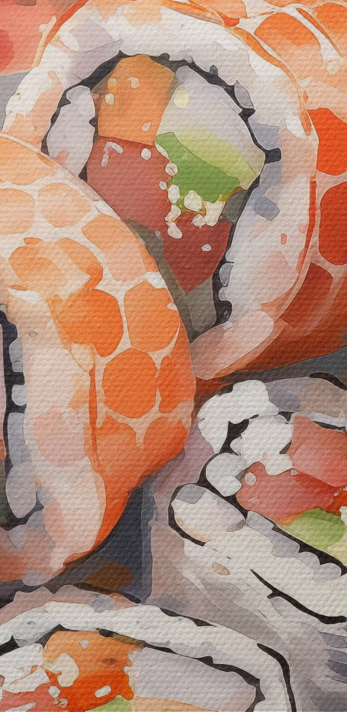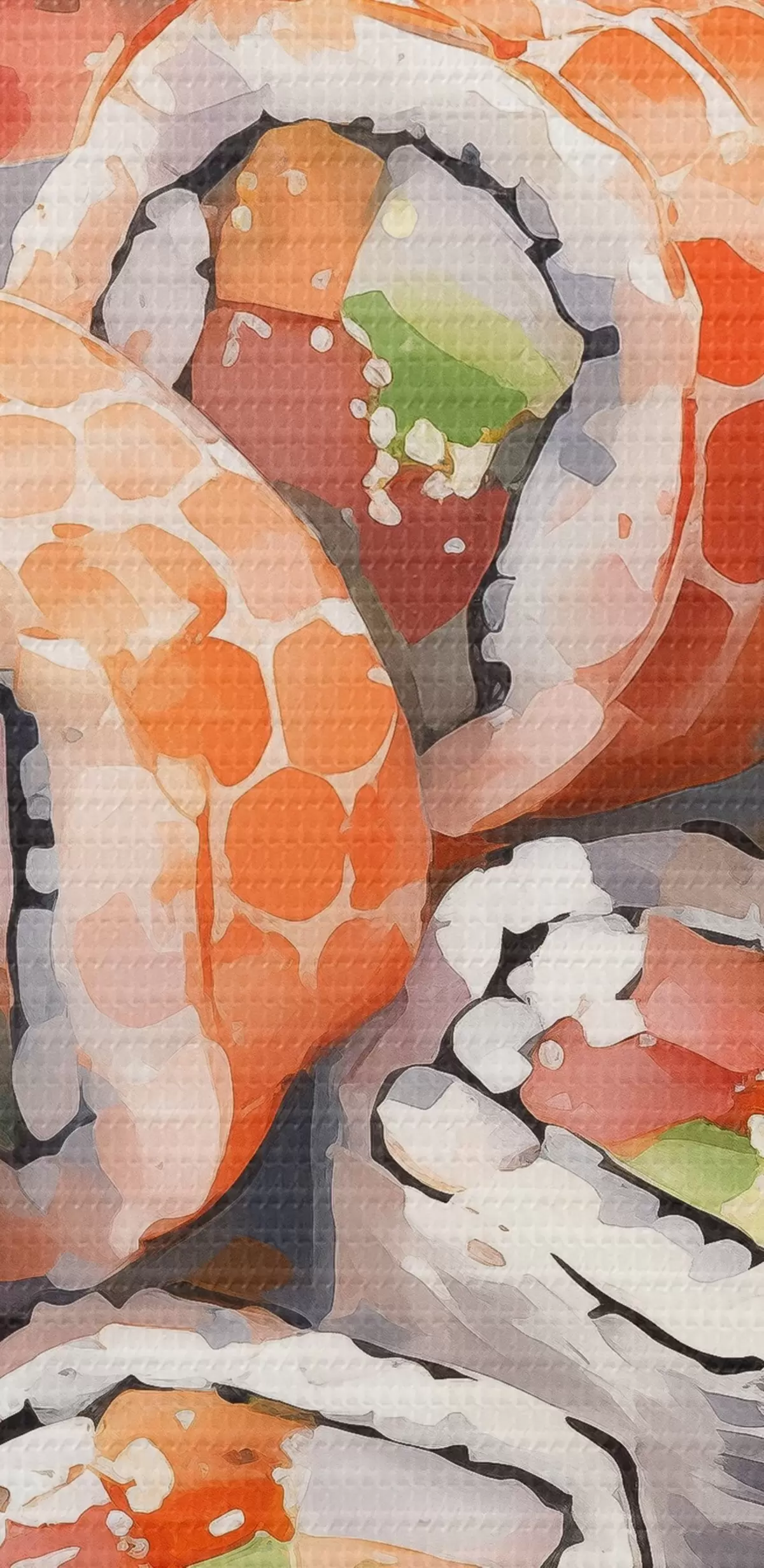 Vászonkép Sushi a tányéron, akvarell, virágos, japán, virágos, japán Nr s41179