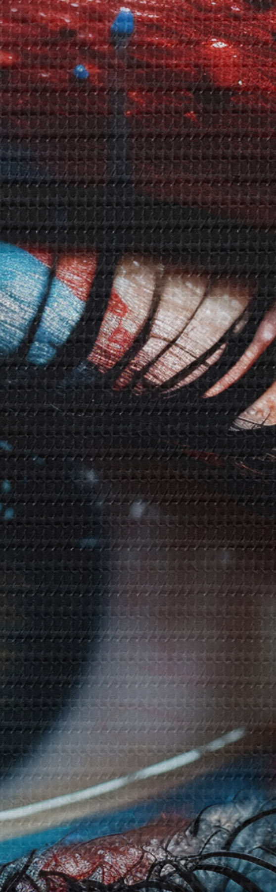 Ahhoz, hogy a vásznat a feszítőrúdra feszítsük anélkül, hogy a kép megsérülne, tükrözött képet használunk.