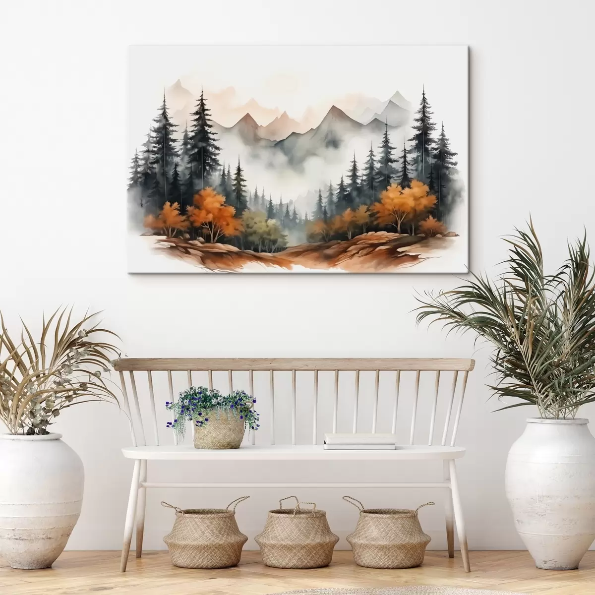 Vászonkép Erdő a háttérben a hegyek akvarell Nr s41240
