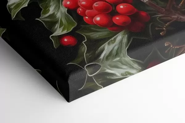 Vászonkép Holly bogyók és levelek sötét háttéren Nr s41273