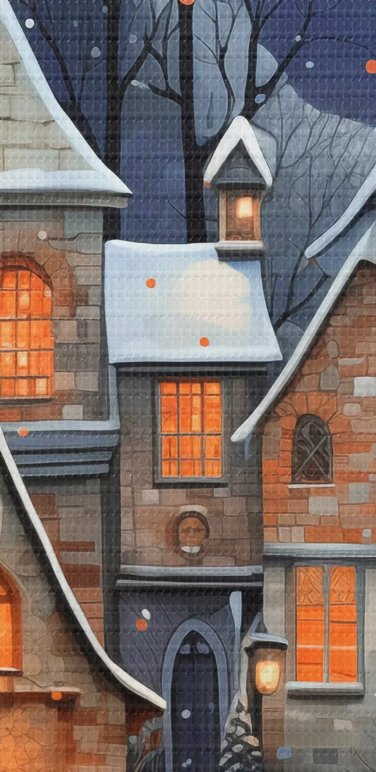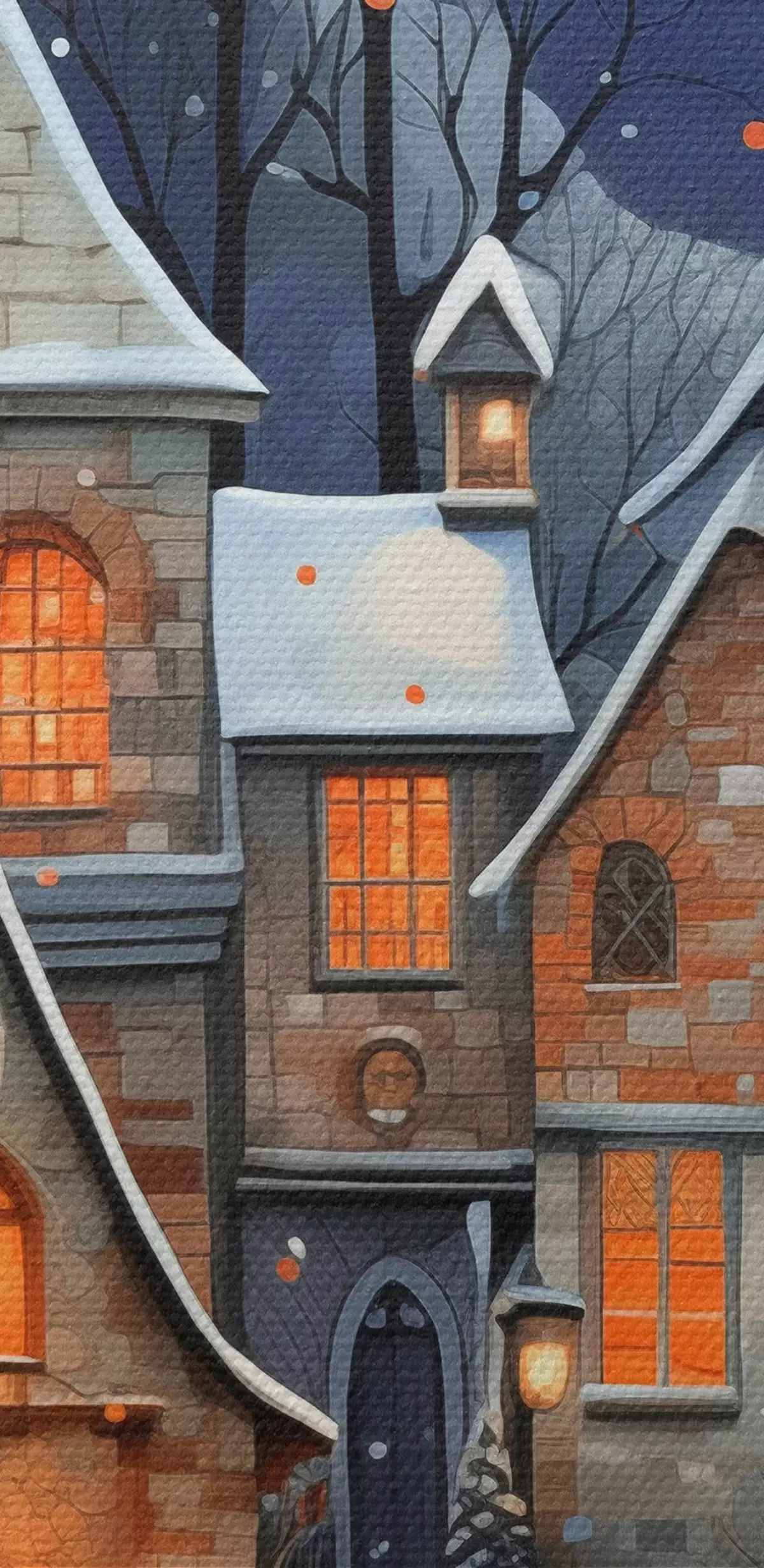 Vászonkép Házak a hóban a csillagos éjszakai égbolt hátterében Nr s41276