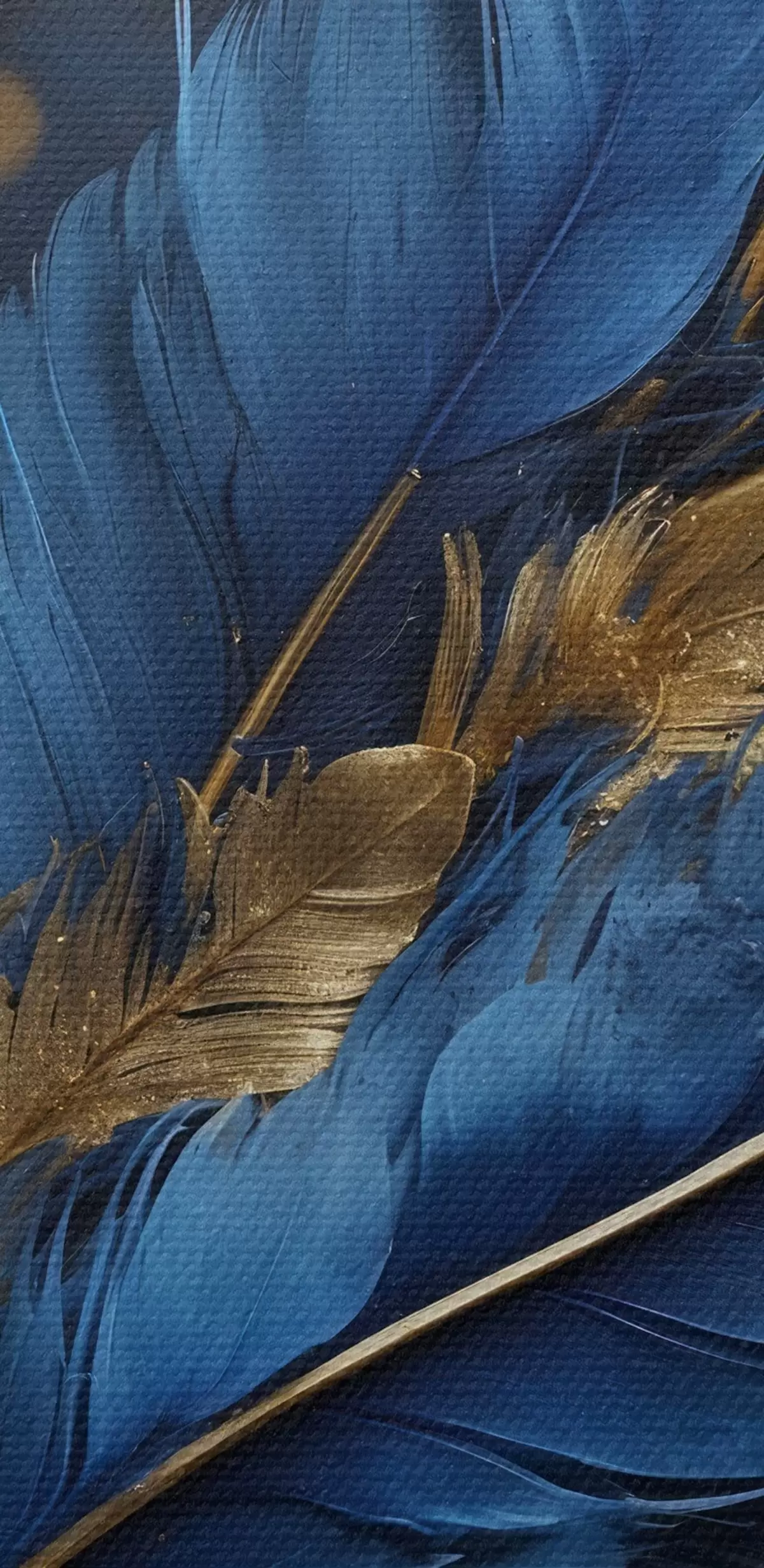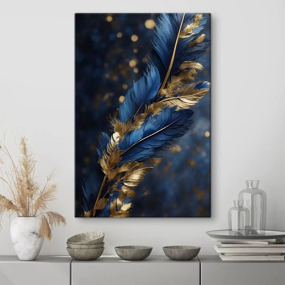 Vászonkép Kék-sárga tollak elmosódott háttéren Nr s41296