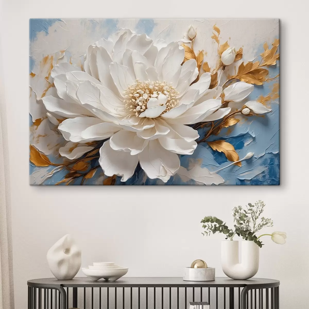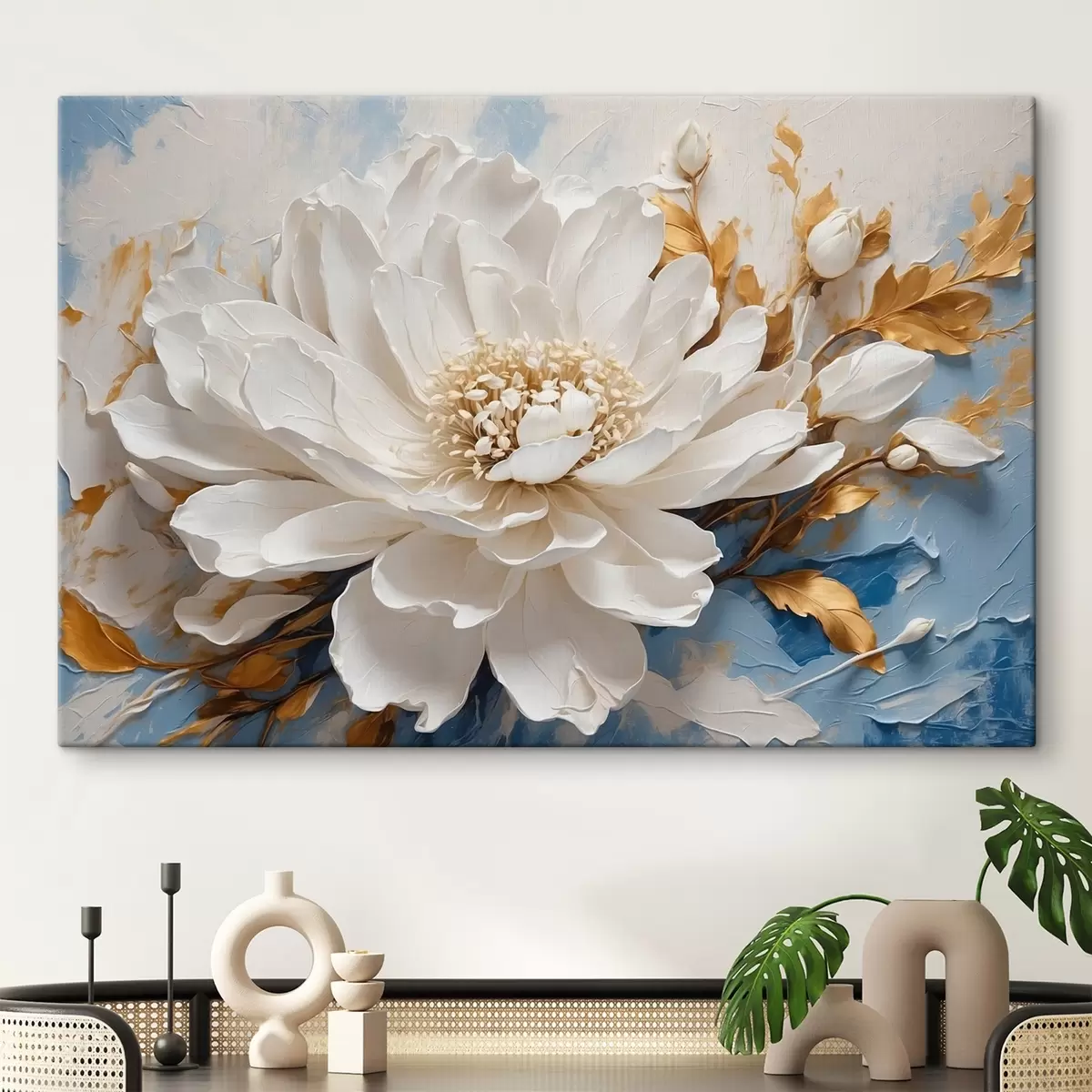 Vászonkép Fehér virág kék-fehér háttéren Nr s41311