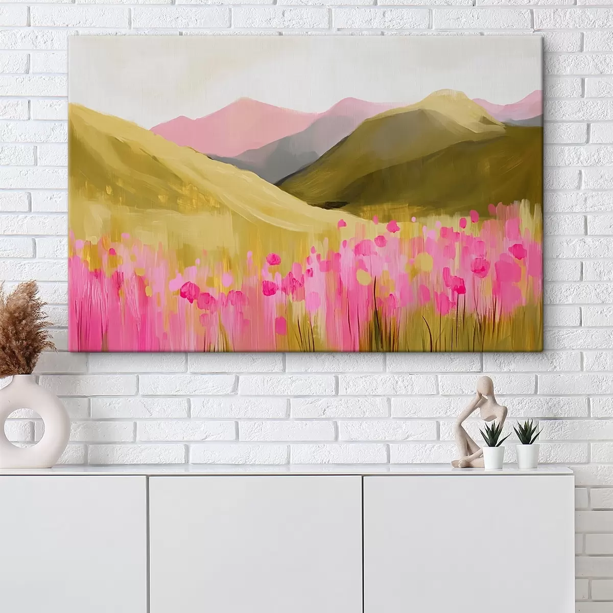 Vászonkép Rózsaszín virágok a hegyek közelében Nr s41339