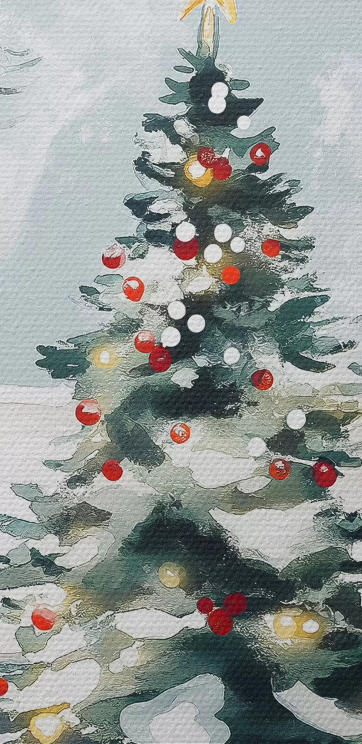 Vászonkép Téli város, feldíszített fenyőfa, karácsony, akvarell Nr s41364