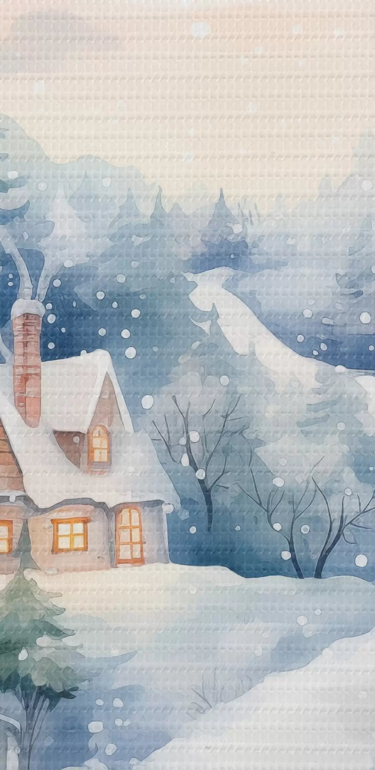 Vászonkép Akvarell téli táj, fenyves erdő, házak Nr s41387