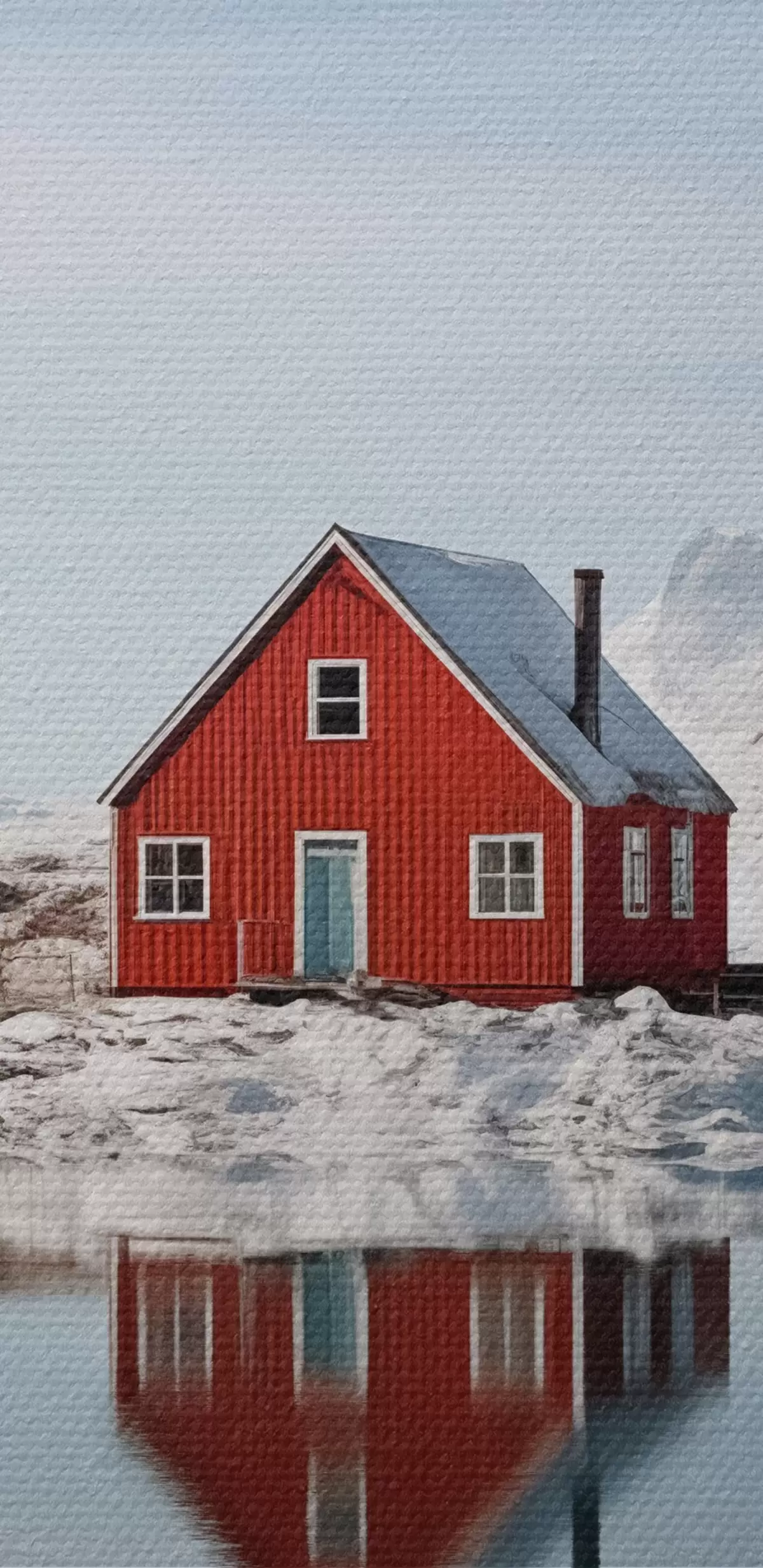 Vászonkép Minimalista téli táj piros ház a tó mellett Nr s41437
