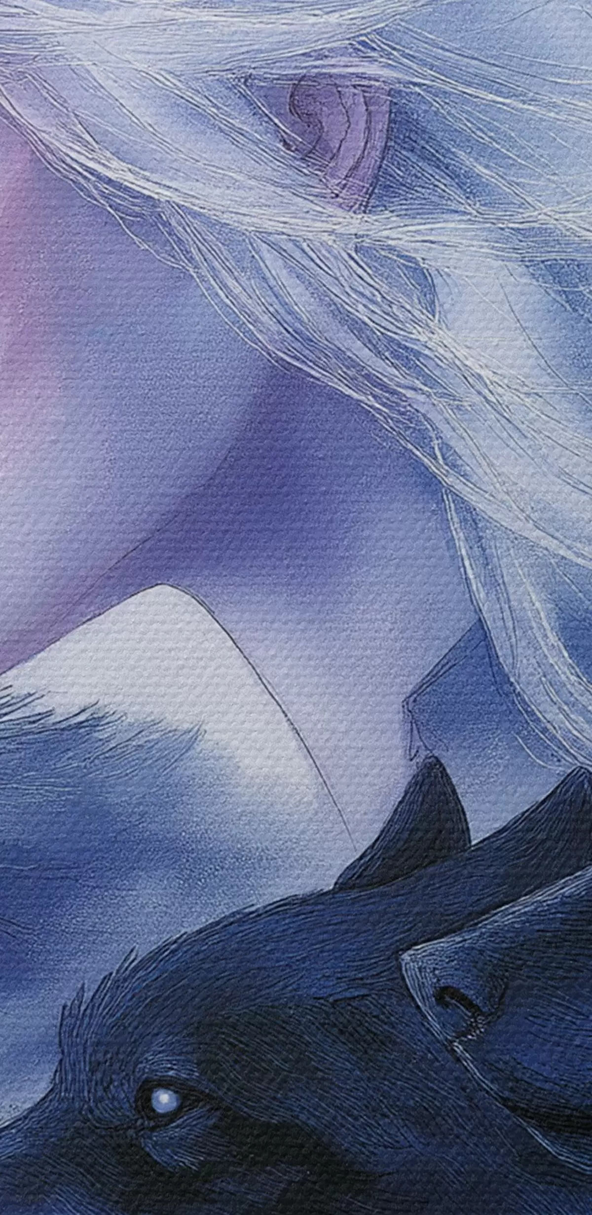 Vászonkép Tél, nő farkasokkal, köd, titokzatos, titokzatos Nr s41460