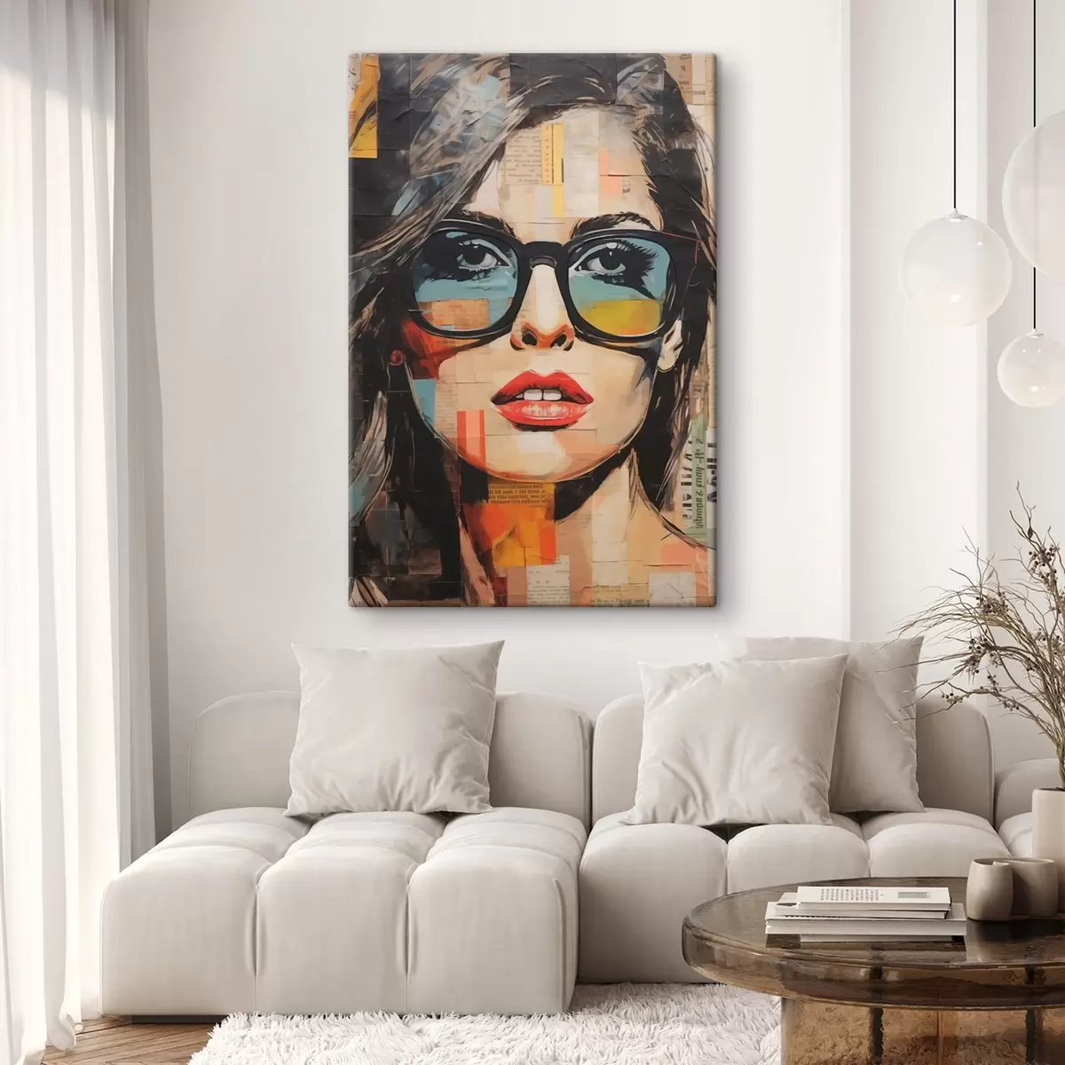 Vászonkép Egy szemüveges lány portréja művészeti kollázs stílusban Nr s41616