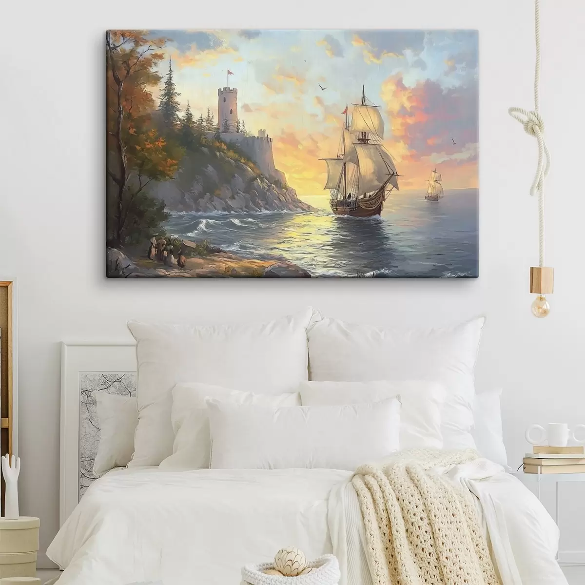 Vászonkép hajó a part közelében hajnalban Nr s41626