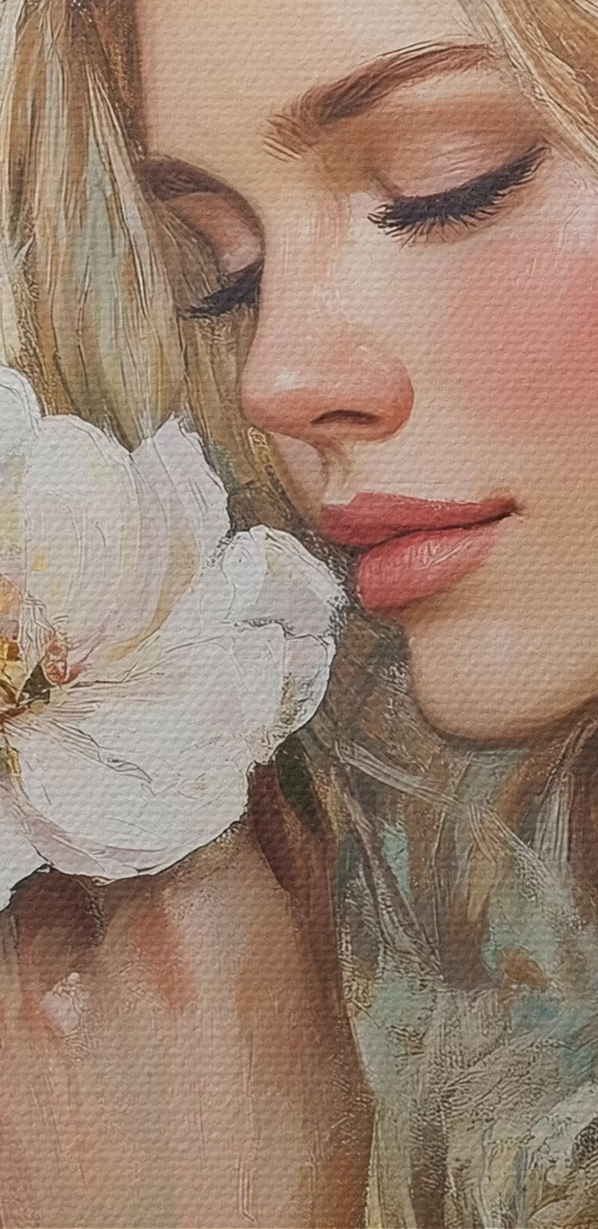 Vászonkép lány virágok közelében olajfestékkel Nr s41632