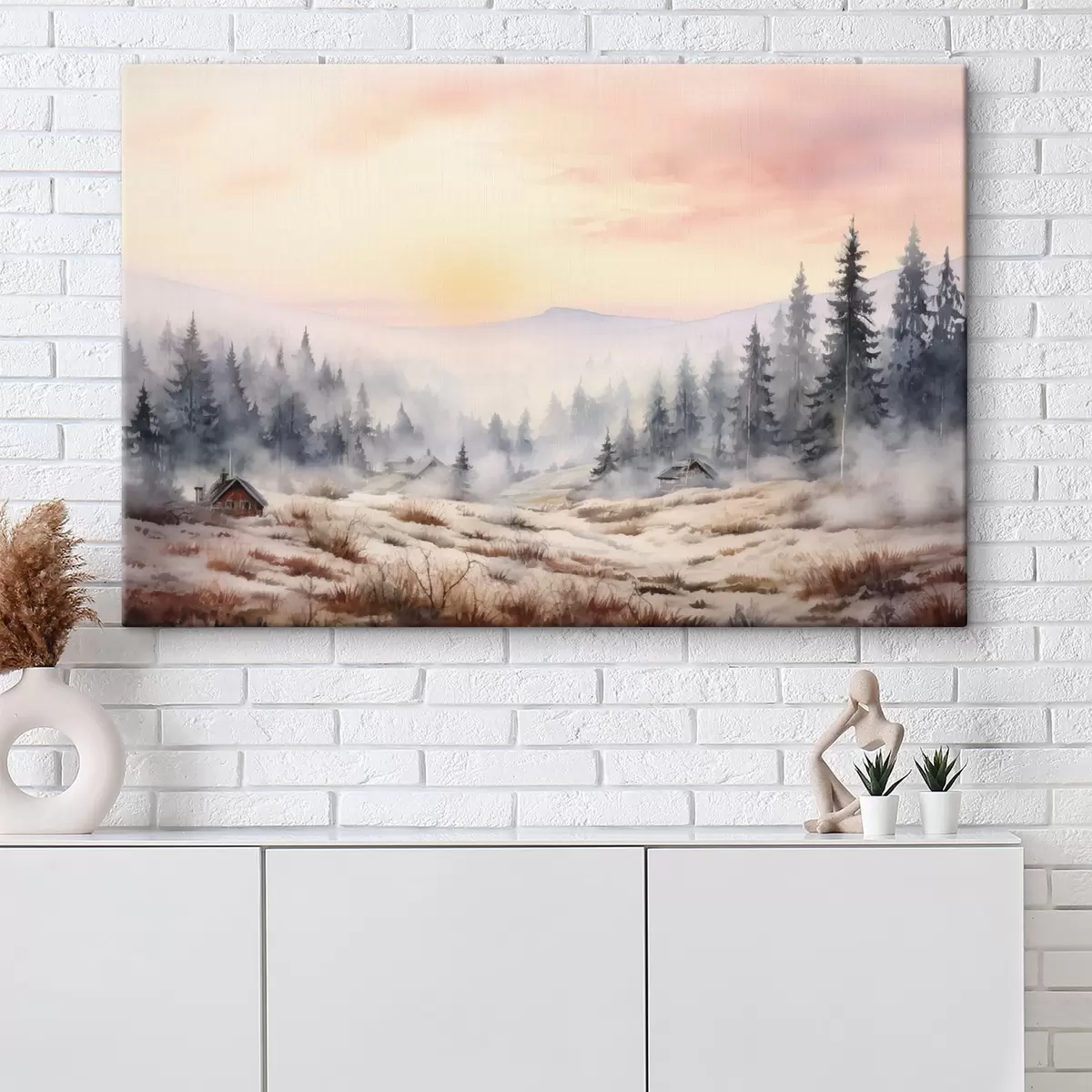 Vászonkép Kárpátok, fagyos erdő, falu, faházak, napfelkelte, falu, falu, faházak, napfelkelte Nr s41647