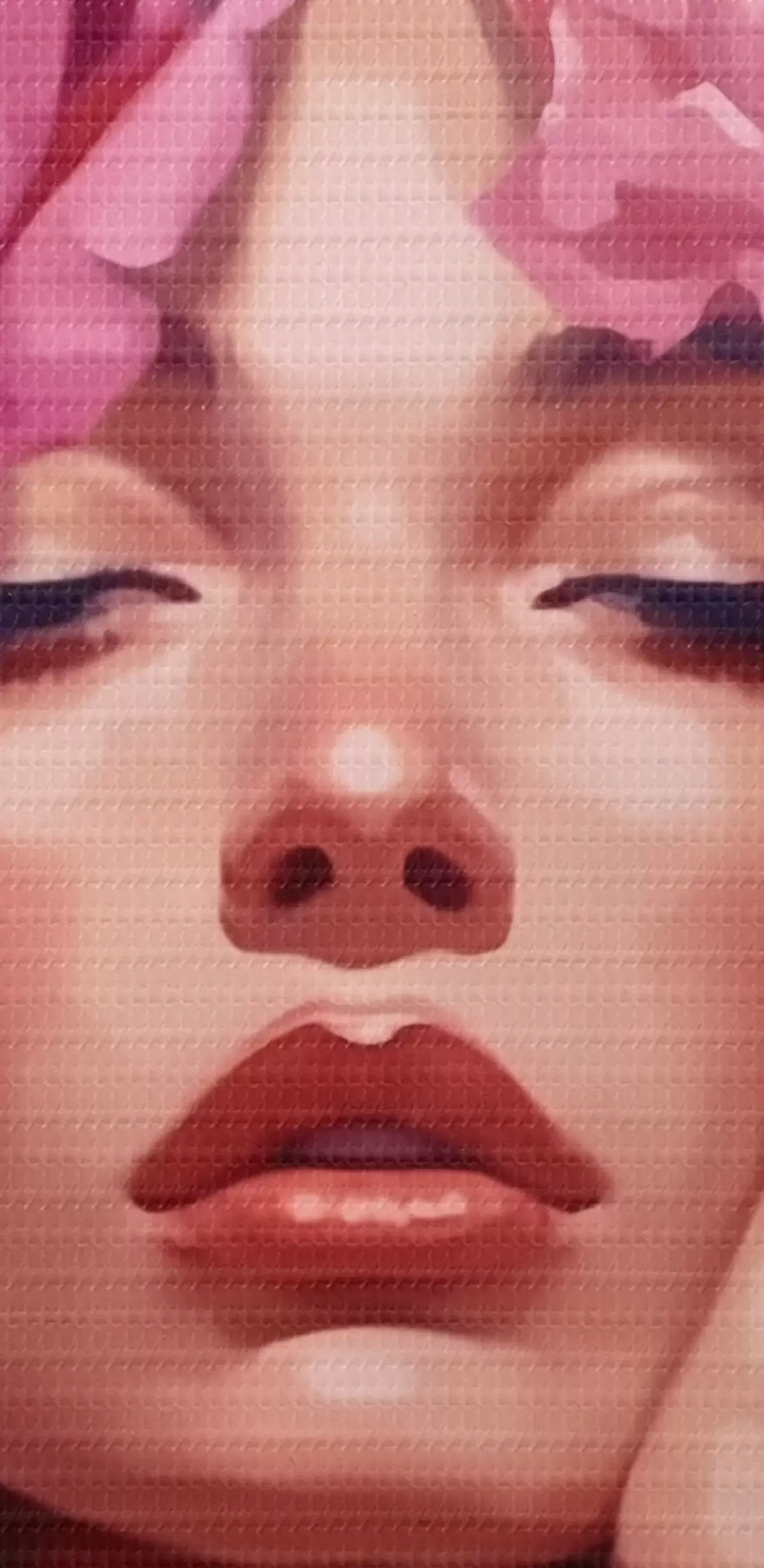 Ahhoz, hogy a vásznat a feszítőrúdra feszítsük anélkül, hogy a kép megsérülne, tükrözött képet használunk.