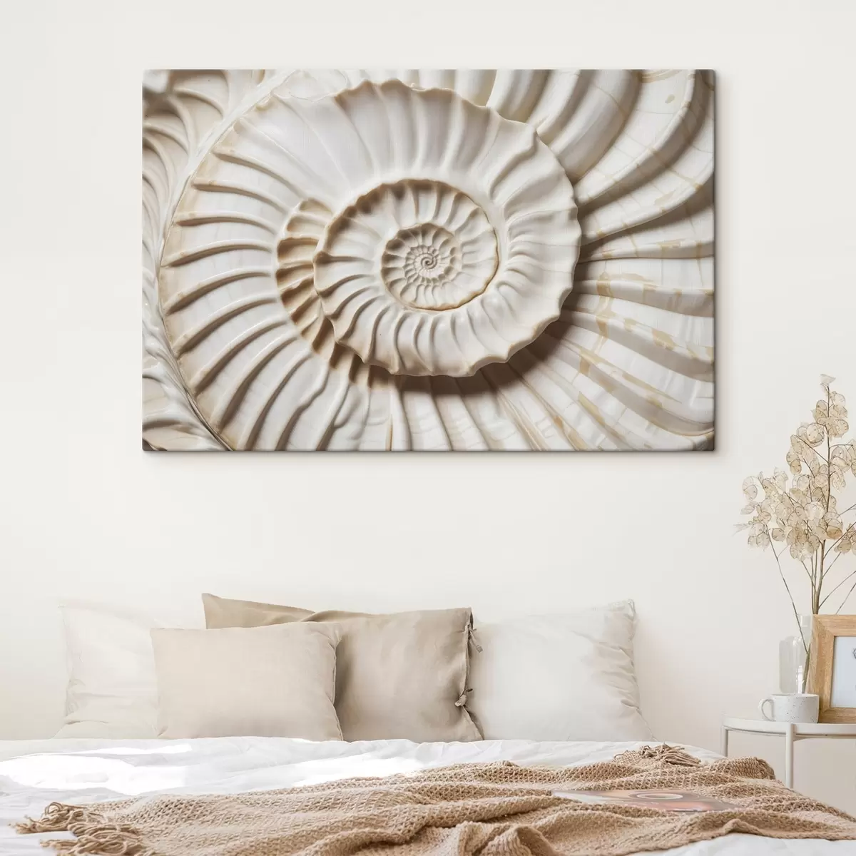 Vászonkép Fehér spirálhéj, amely bemutatja bonyolult és részletes mintázatát Nr s41728