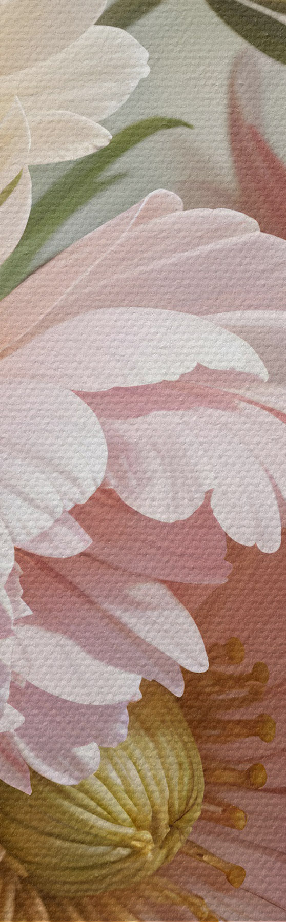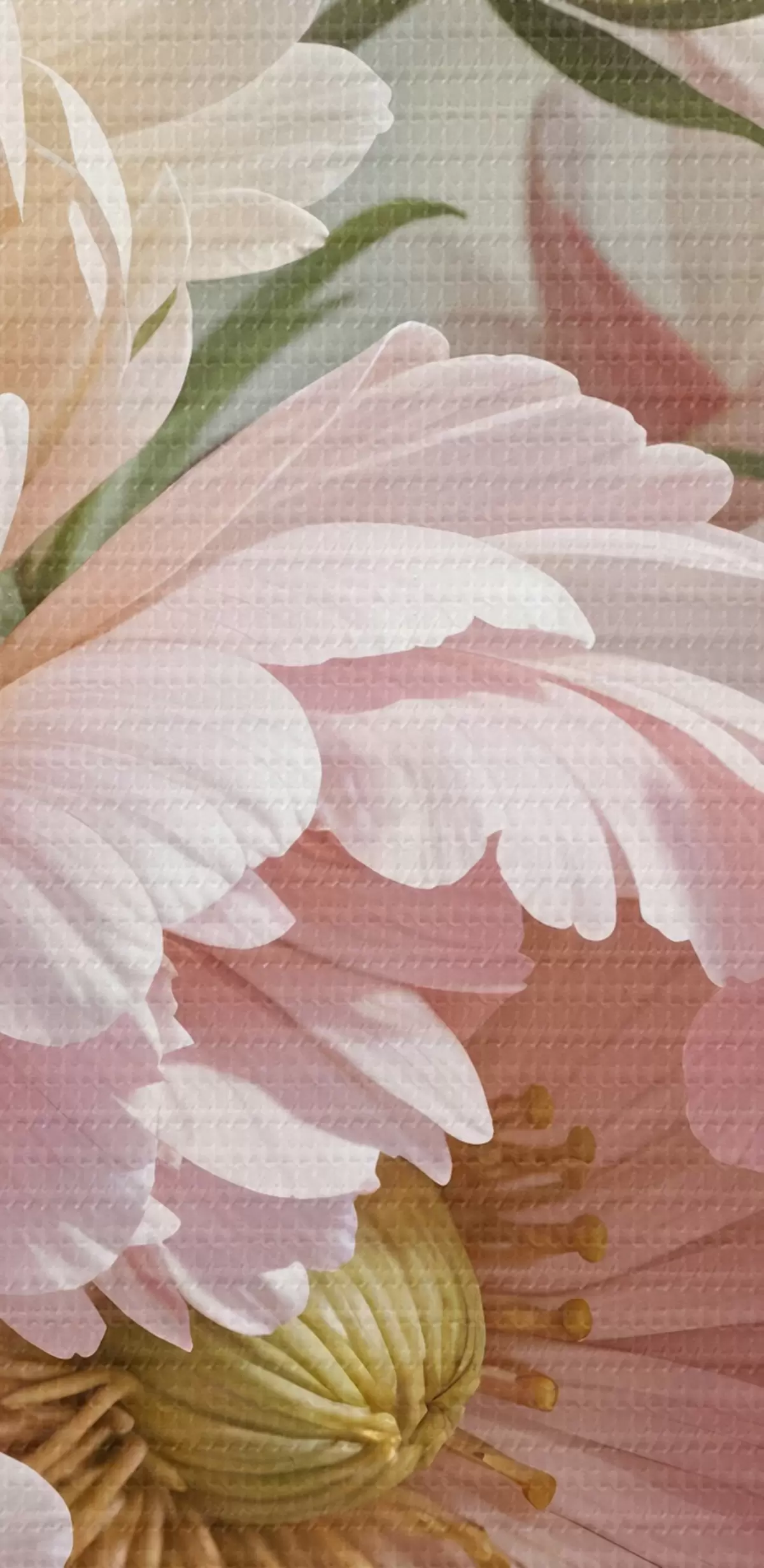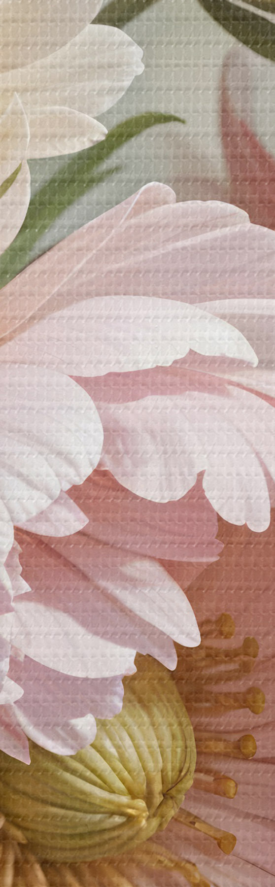Vászonkép Több nagy, buja pünkösdi rózsaszín és fehér árnyalatú, finom szirmú virág Nr s41729