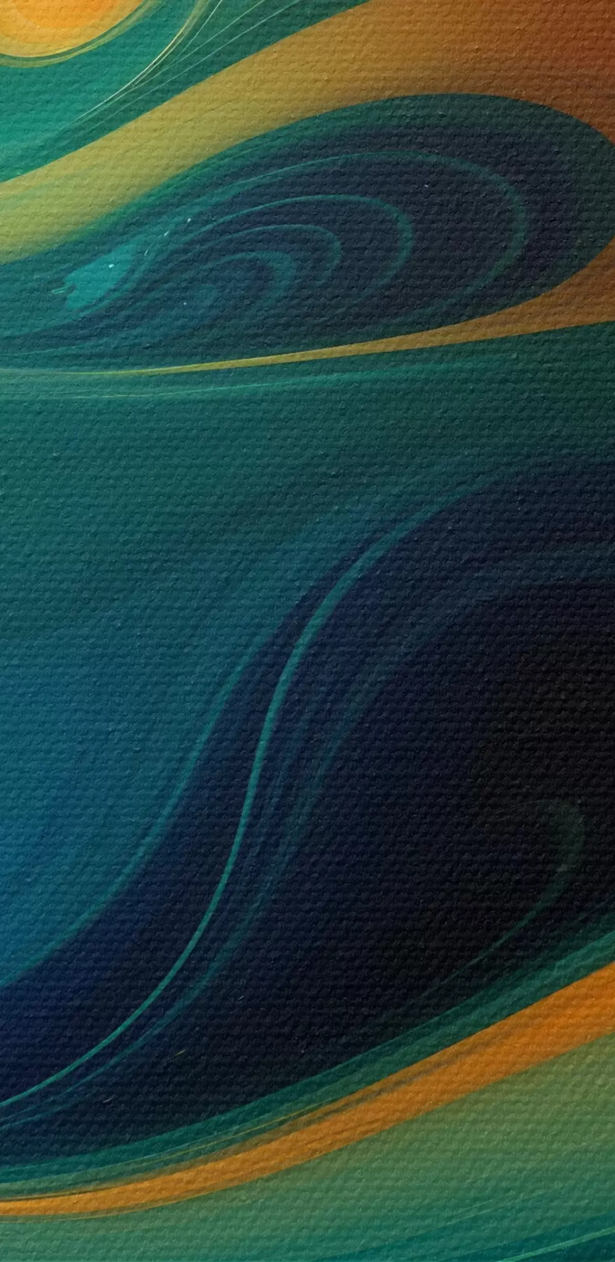 Vászonkép Kavargó absztrakt minták a zöld, kék és narancssárga árnyalataiban, folyékony, organikus formákkal és textúrákkal Nr s41737