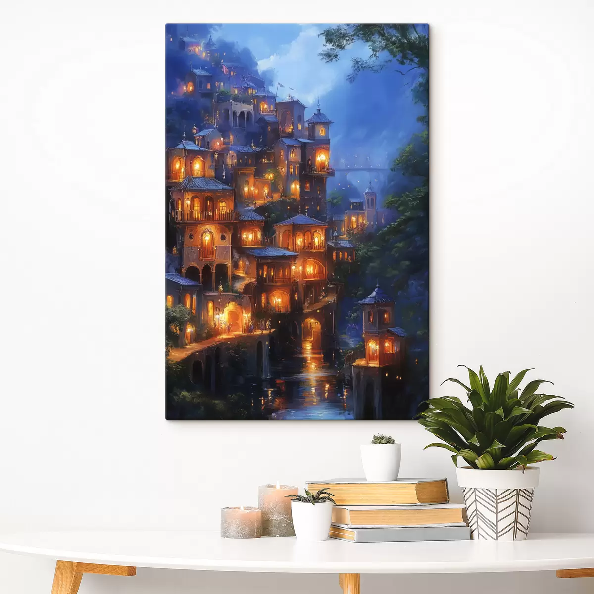 Vászonkép Éjszakai város a hegyekben Nr s41750