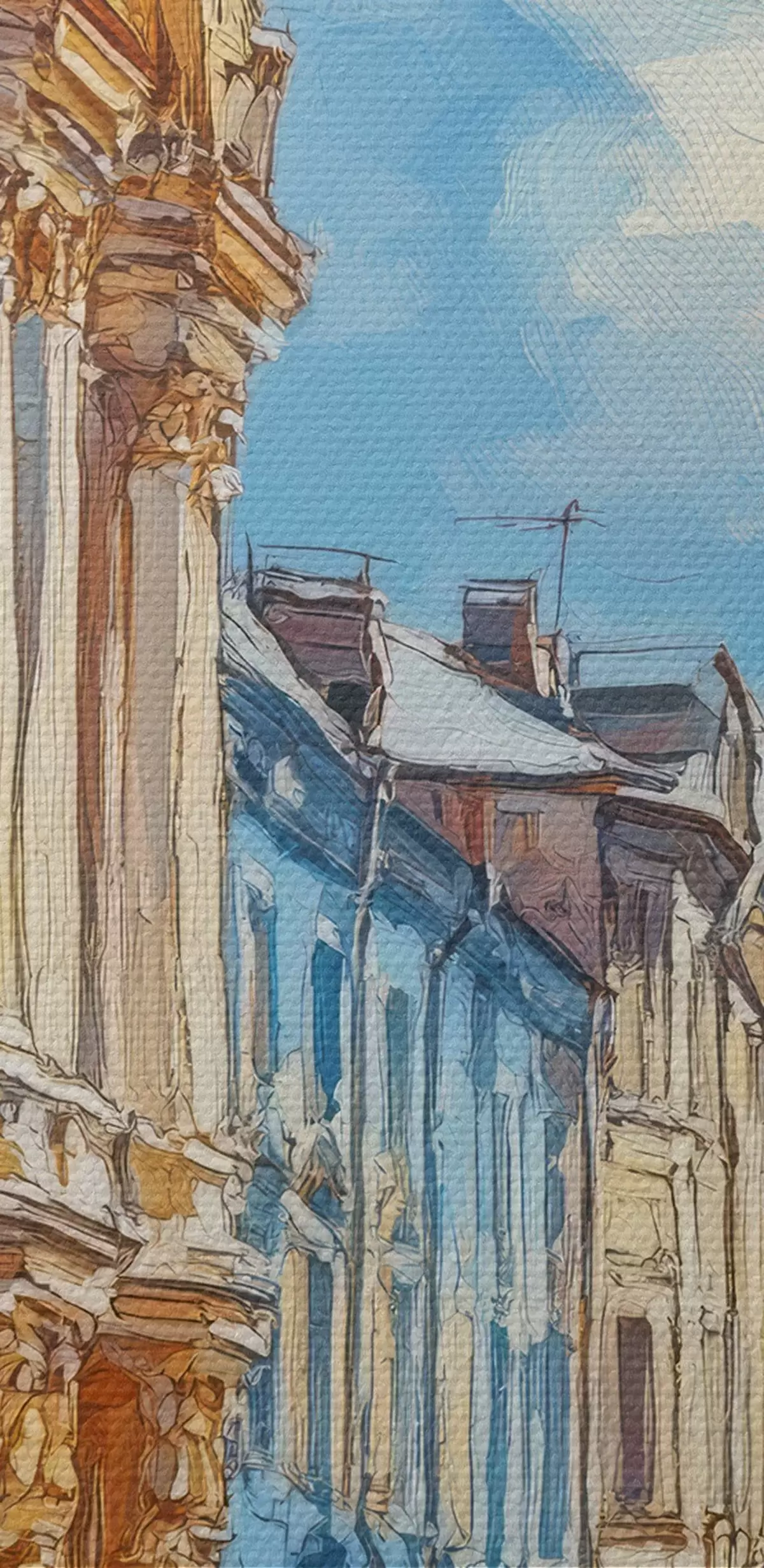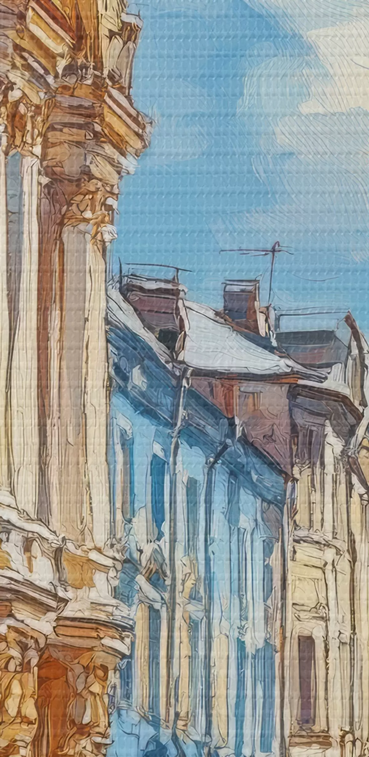 Vászonkép Városi utca egy napsütéses napon, olajfestmény stílusban Nr s41751