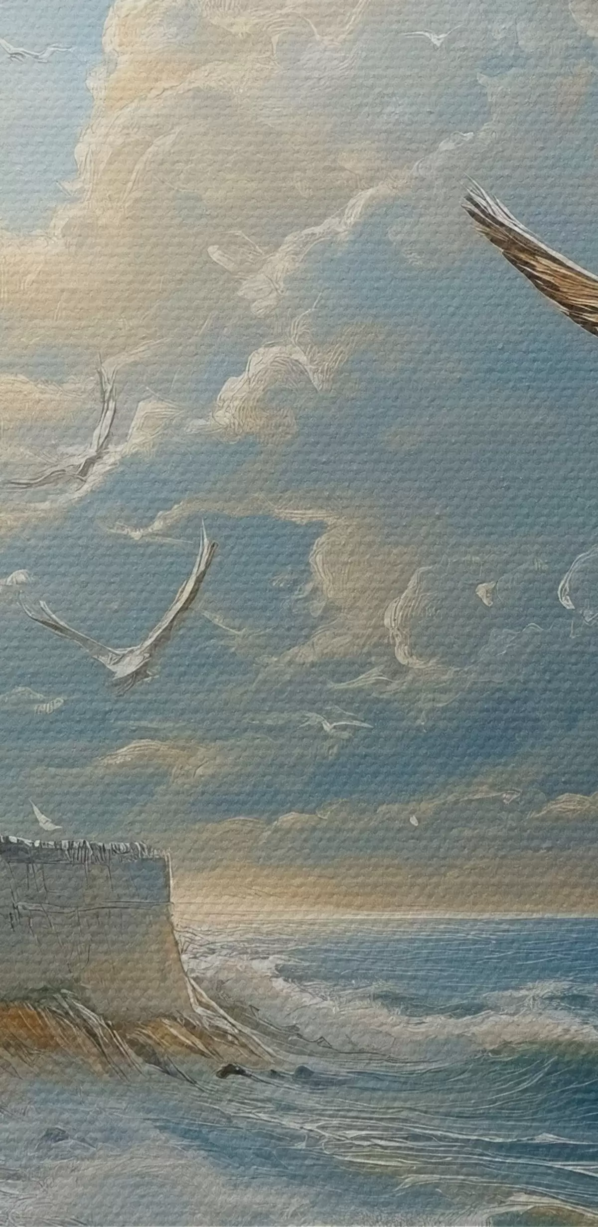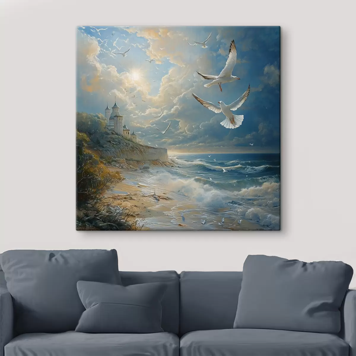 Vászonkép Tengerpart és madarak, olajfestmény stílusában Nr s41756