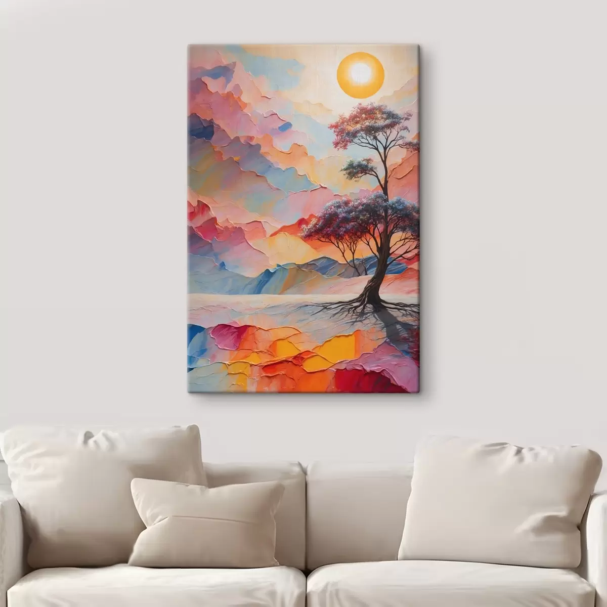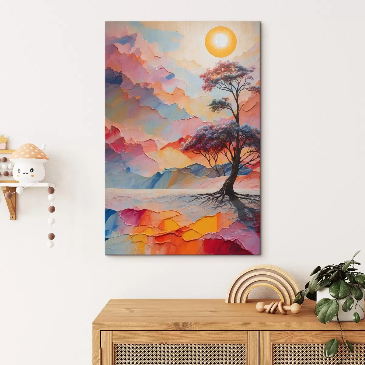 Vászonkép Fa és nap absztrakt háttéren akril stílusban Nr s41771