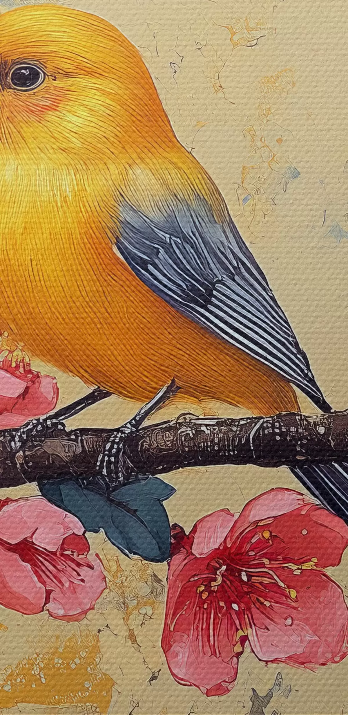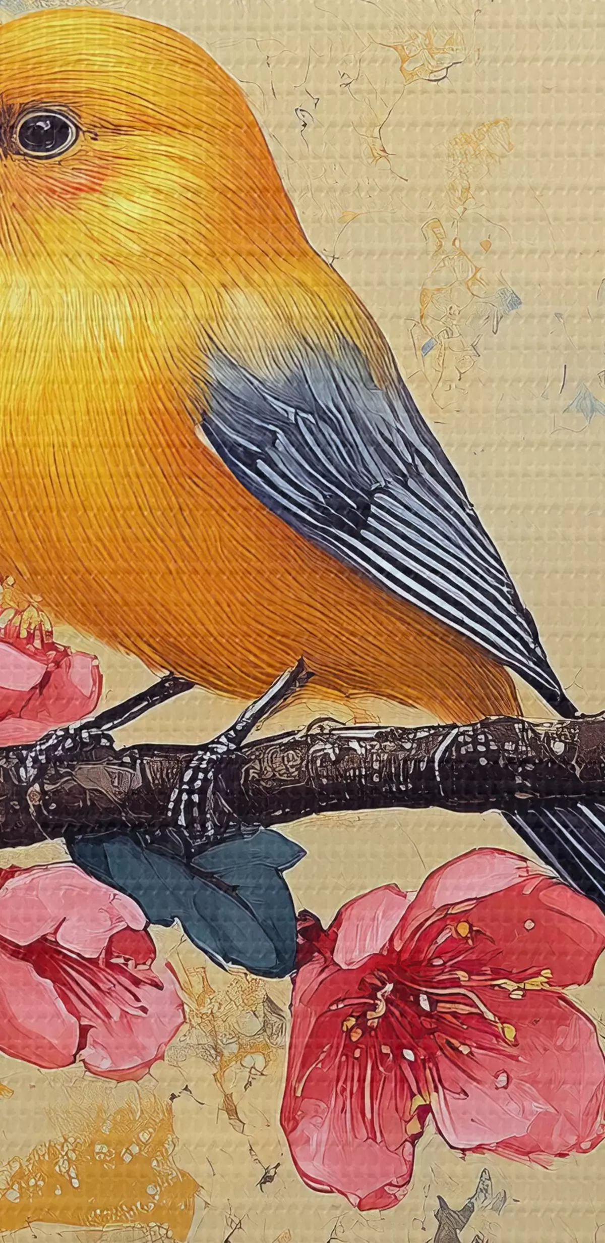 Vászonkép Veréb a sakura ágán az olajfestmény stílusában Nr s41835