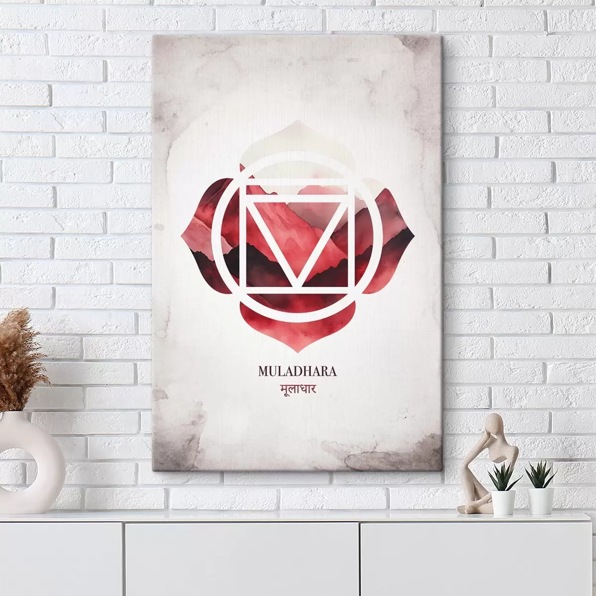 Vászonkép Muladhara csakra, vörös csakra, ezoterika, meditáció, buddhizmus, akvarell stílusú hegyek, akvarell stílusú hegyek Nr s41880