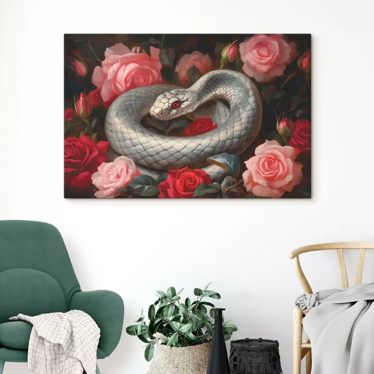 Vászonkép Fehér kígyó rózsák között Nr s41920