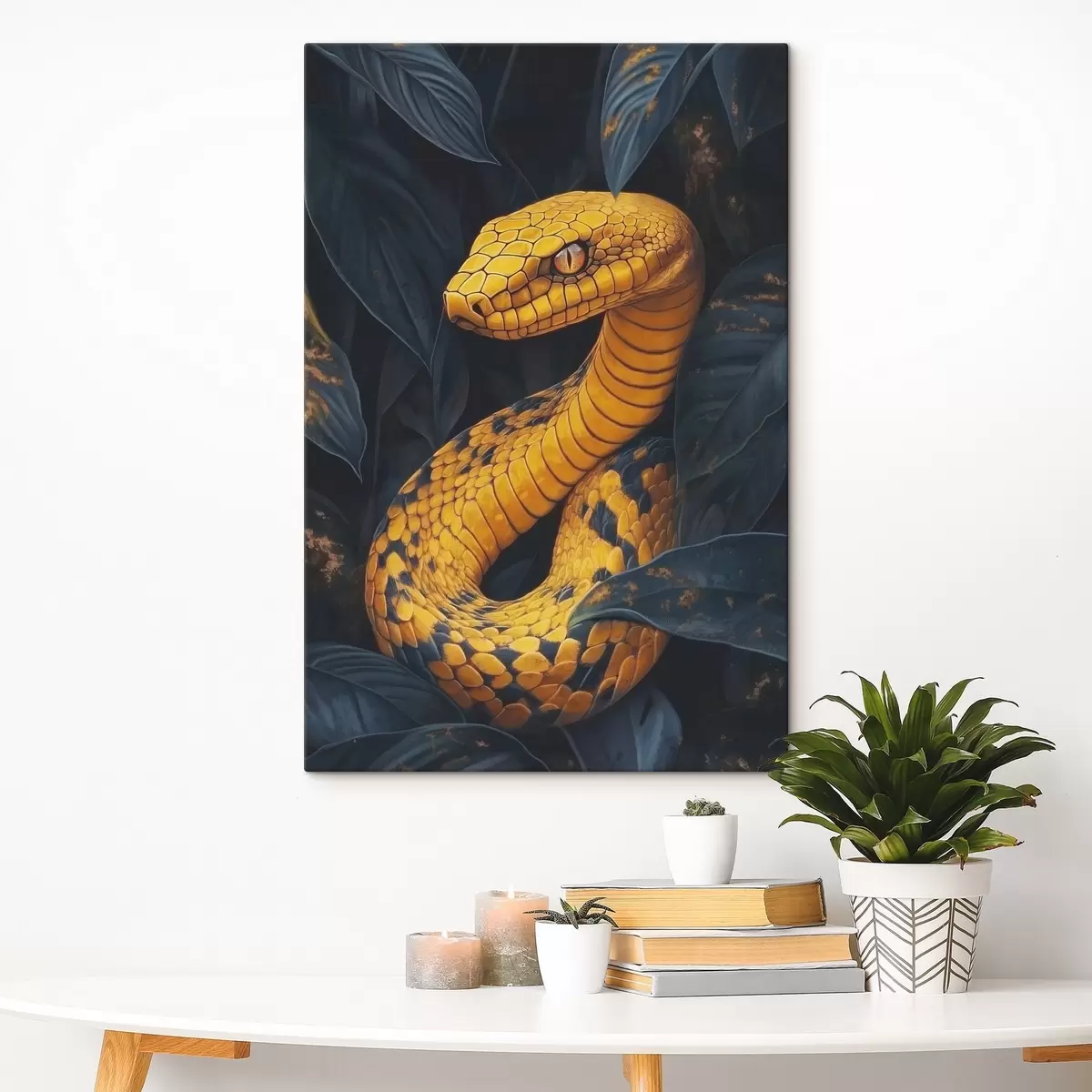 Vászonkép Sárga kígyó a levelekben Nr s41927