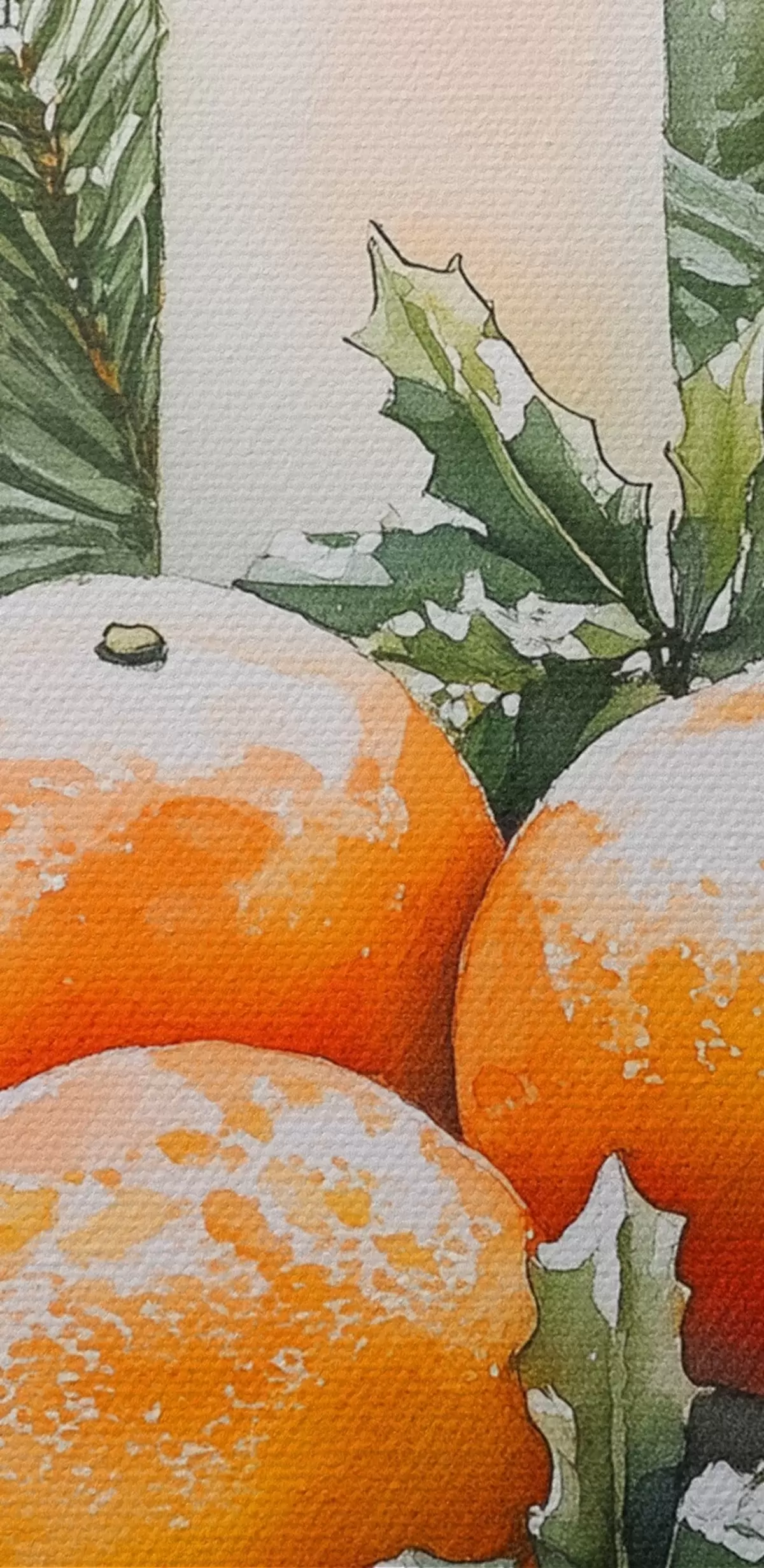 Vászonkép Karácsonyi dekoráció gyertyákkal, fenyőfával, tobozokkal és narancsokkal, akvarell stílusban Nr s41951