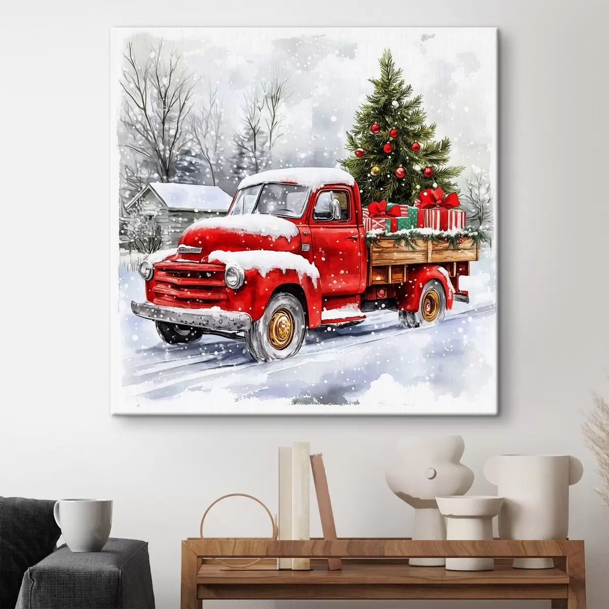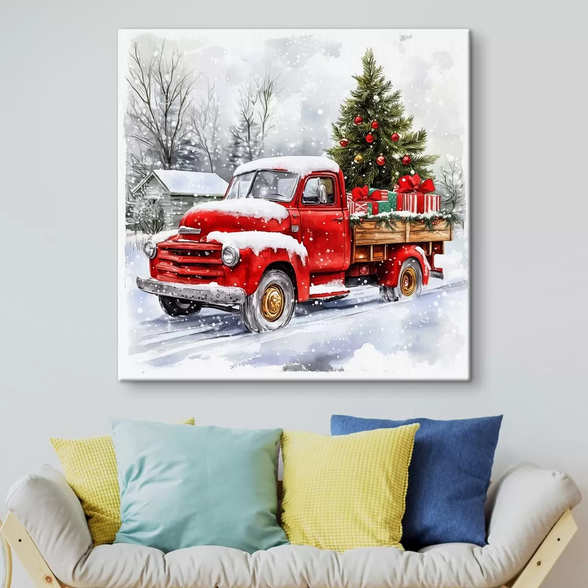 Vászonkép Karácsonyi autó fával és ajándékokkal havas időben Nr s41968