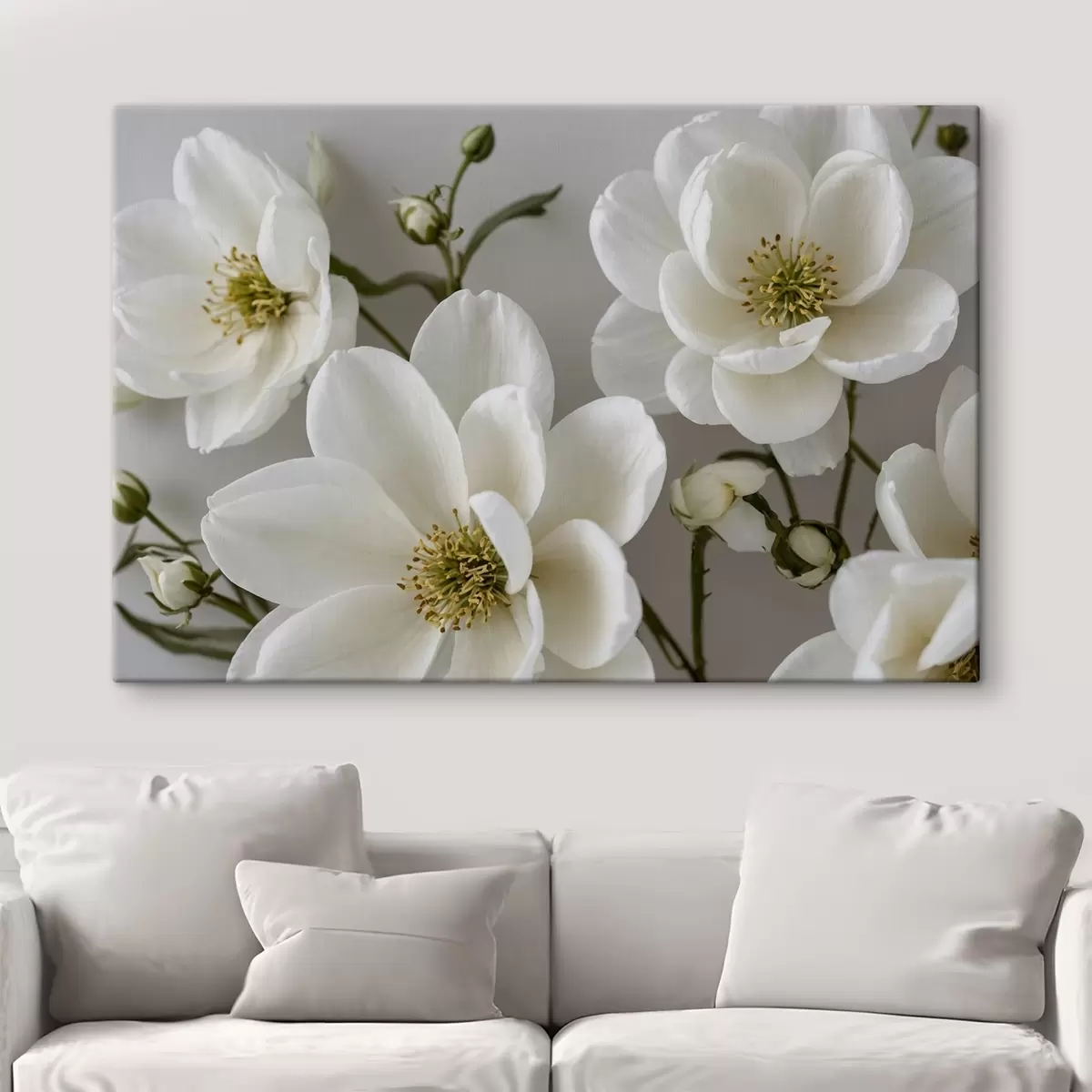 Vászonkép Fehér virágok és szárak világos háttéren Nr s42097