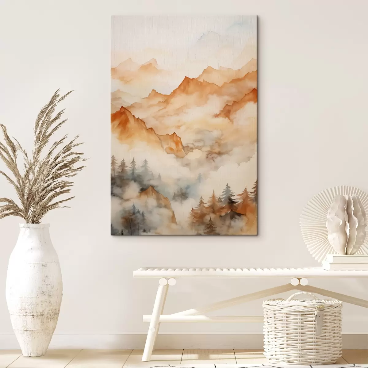 Vászonkép Erdő és hegyek utánzata akvarell, narancssárga árnyalatai Nr s42119