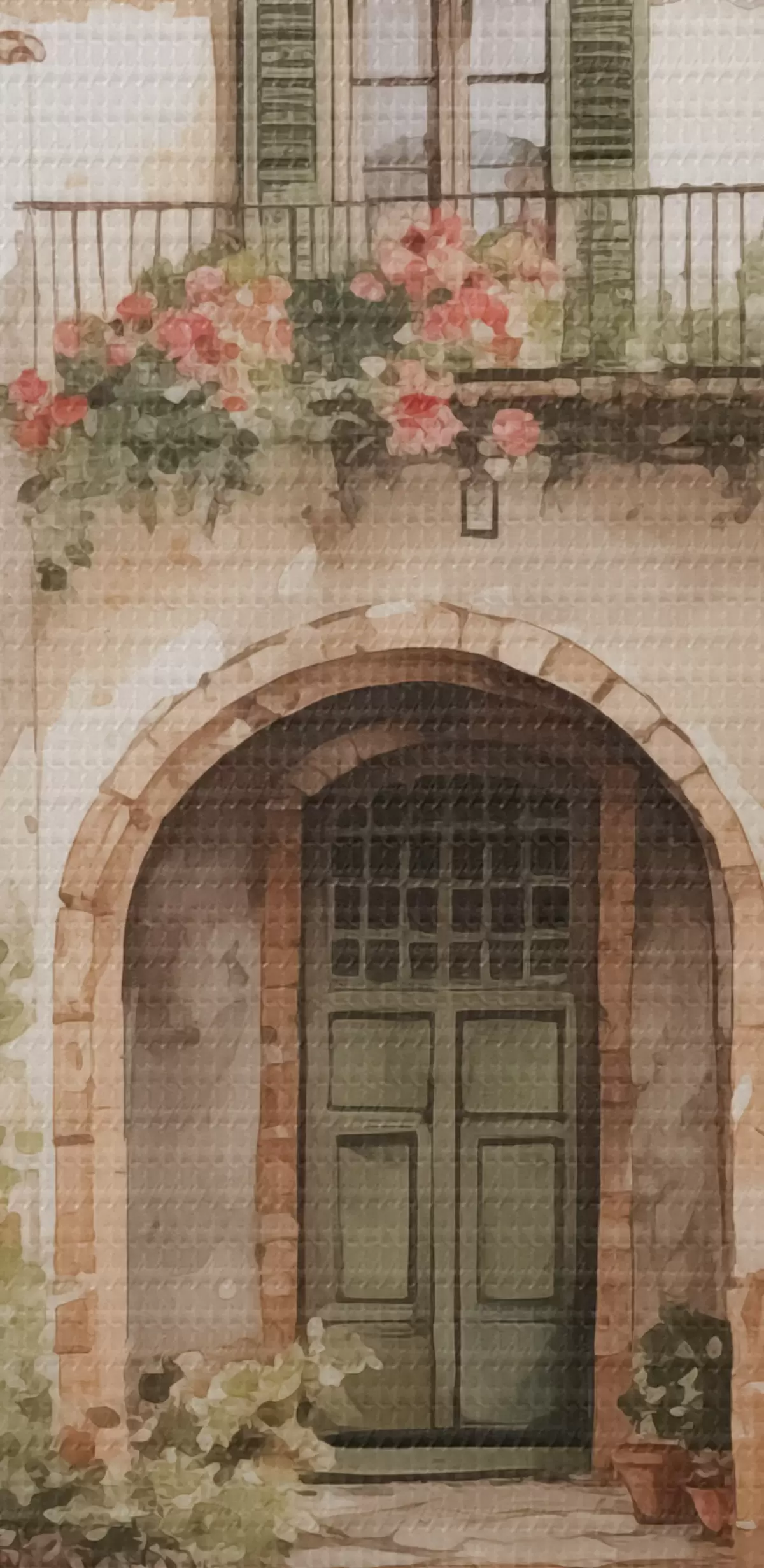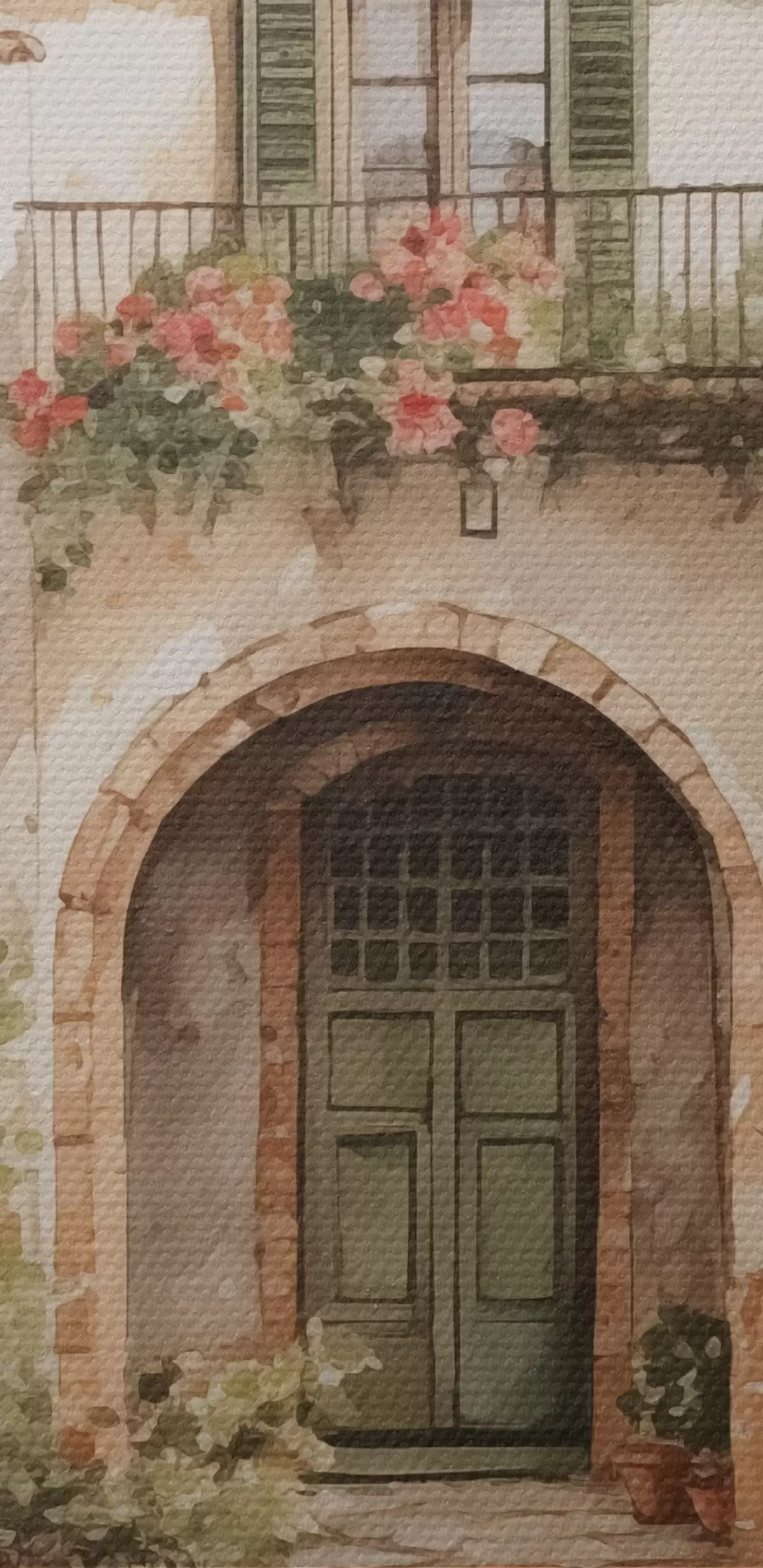 Vászonkép Olasz udvar virágcserepekkel akvarell utánzással Nr s42126