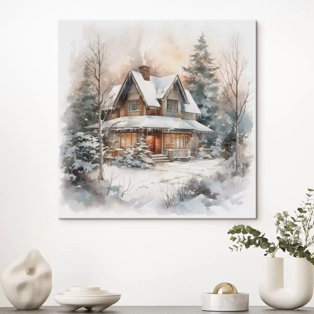 Vászonkép Ház egy havas erdőben akvarell utánzata Nr s42137