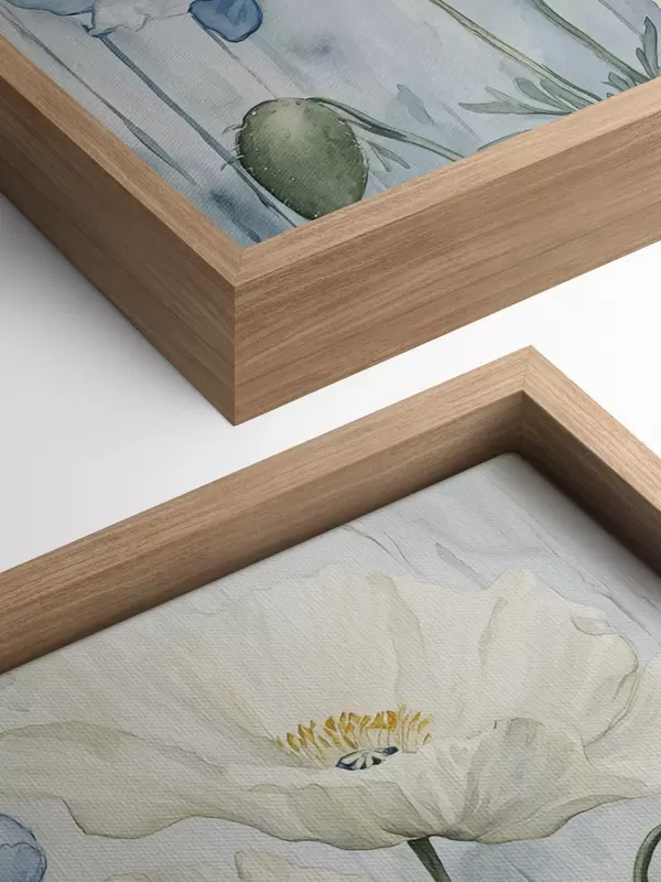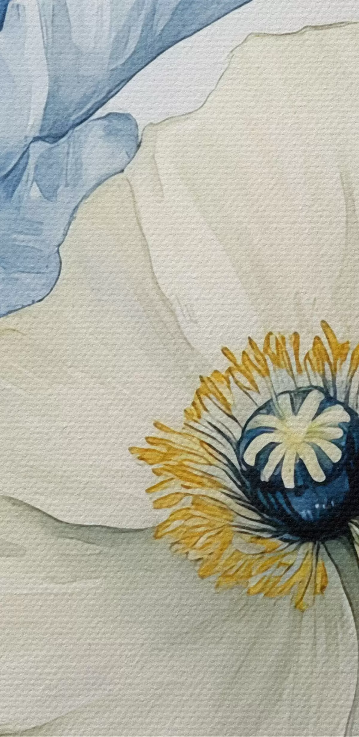Vászonkép Kék és fehér pipacsok akvarell háttéren Nr s42191