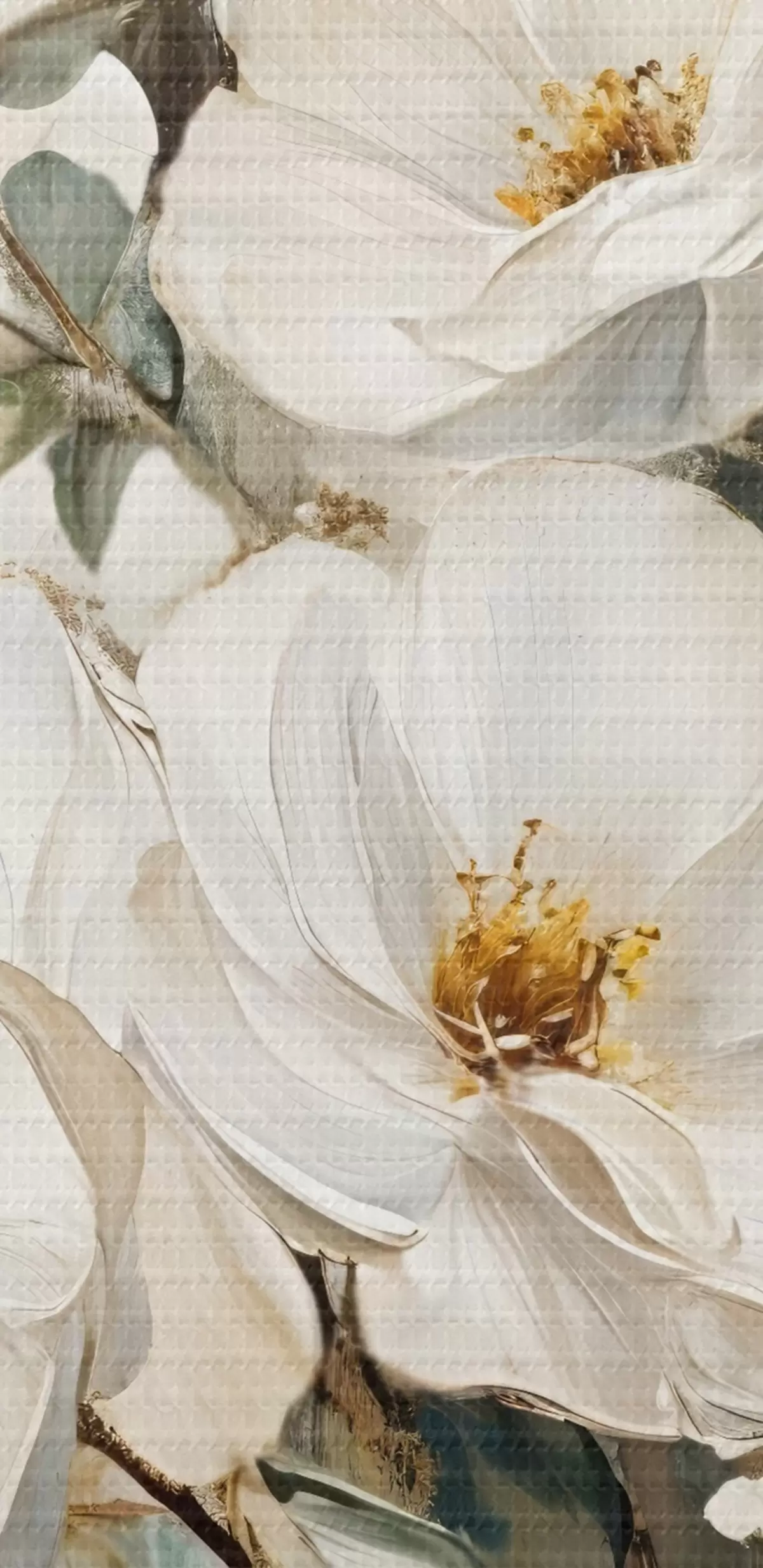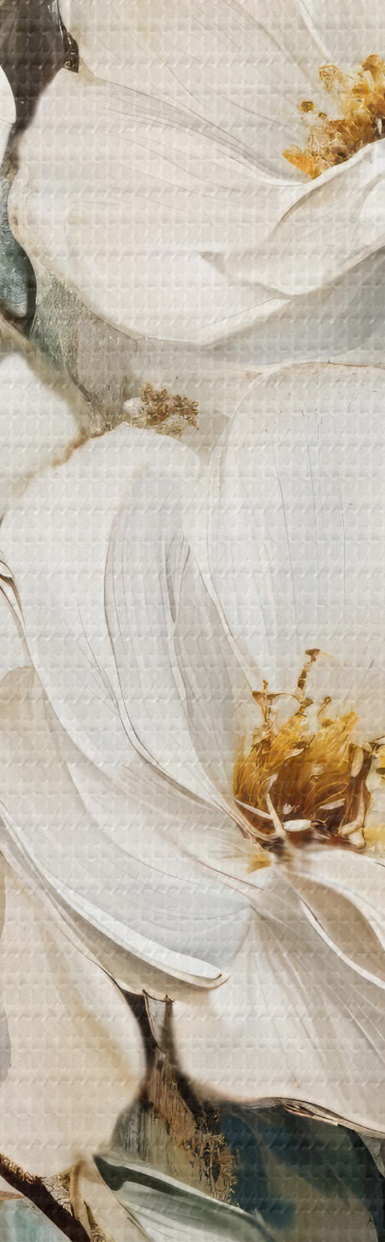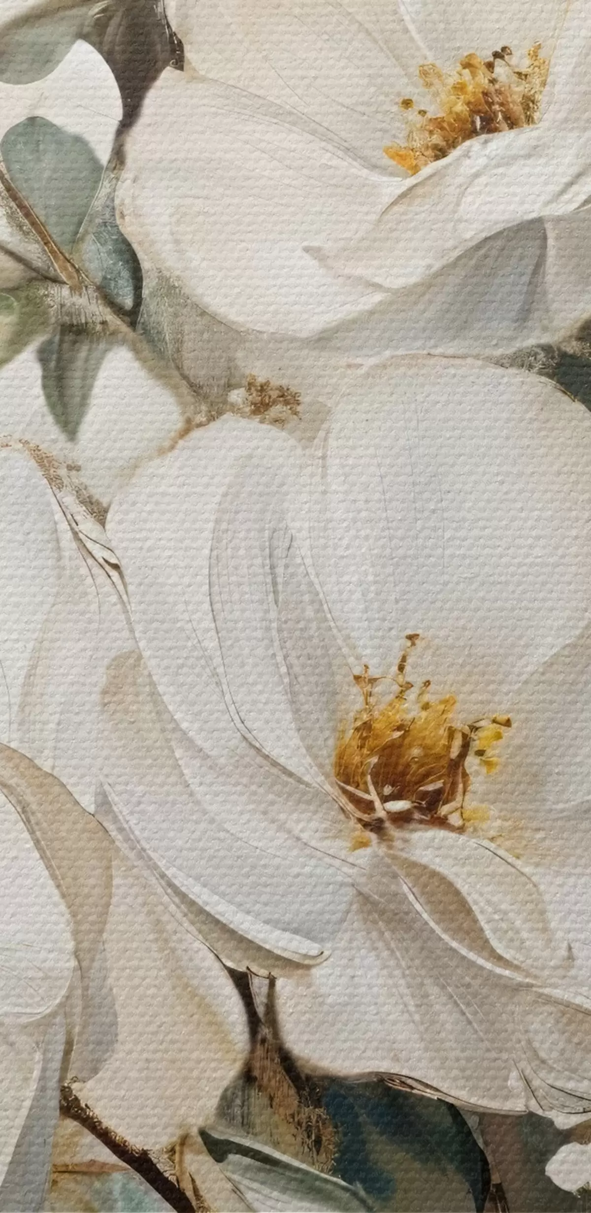 Vászonkép Egy csokor nagy fehér virágok olajfestmény stílusban, sárga központokkal világos háttér előtt Nr s42222