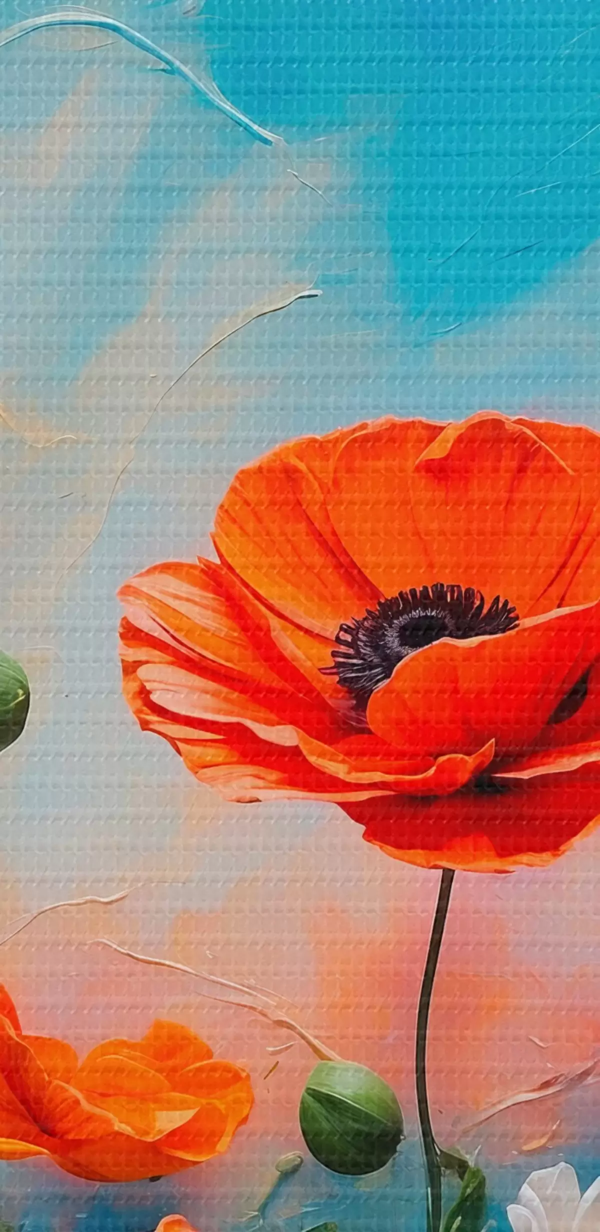 Vászonkép Százszorszépek és pipacsok kék háttéren Nr s42261