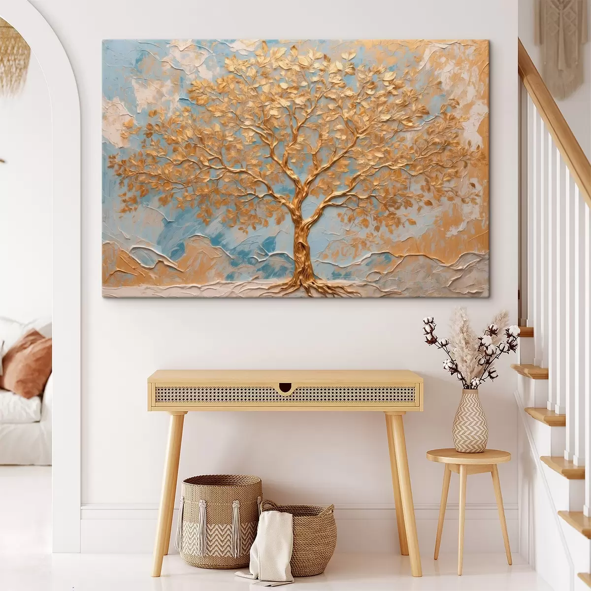 Vászonkép Sárga fa kék-fehér háttéren Nr s42266