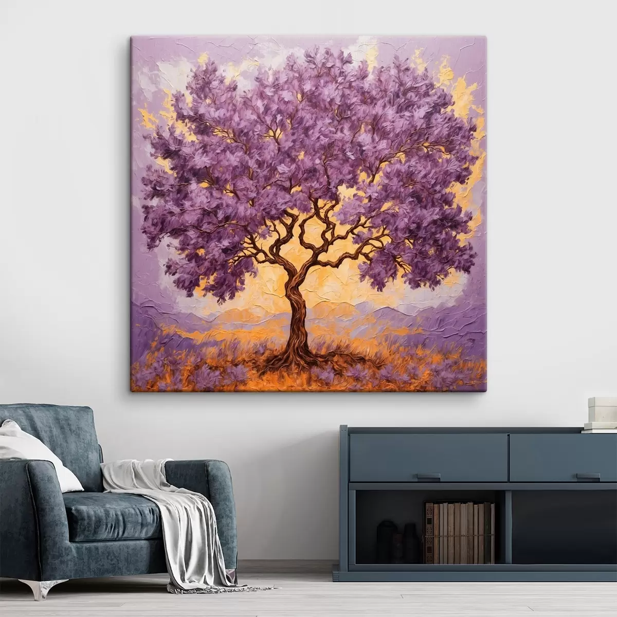Vászonkép Lila fa sárga-phyolotol háttéren Nr s42272