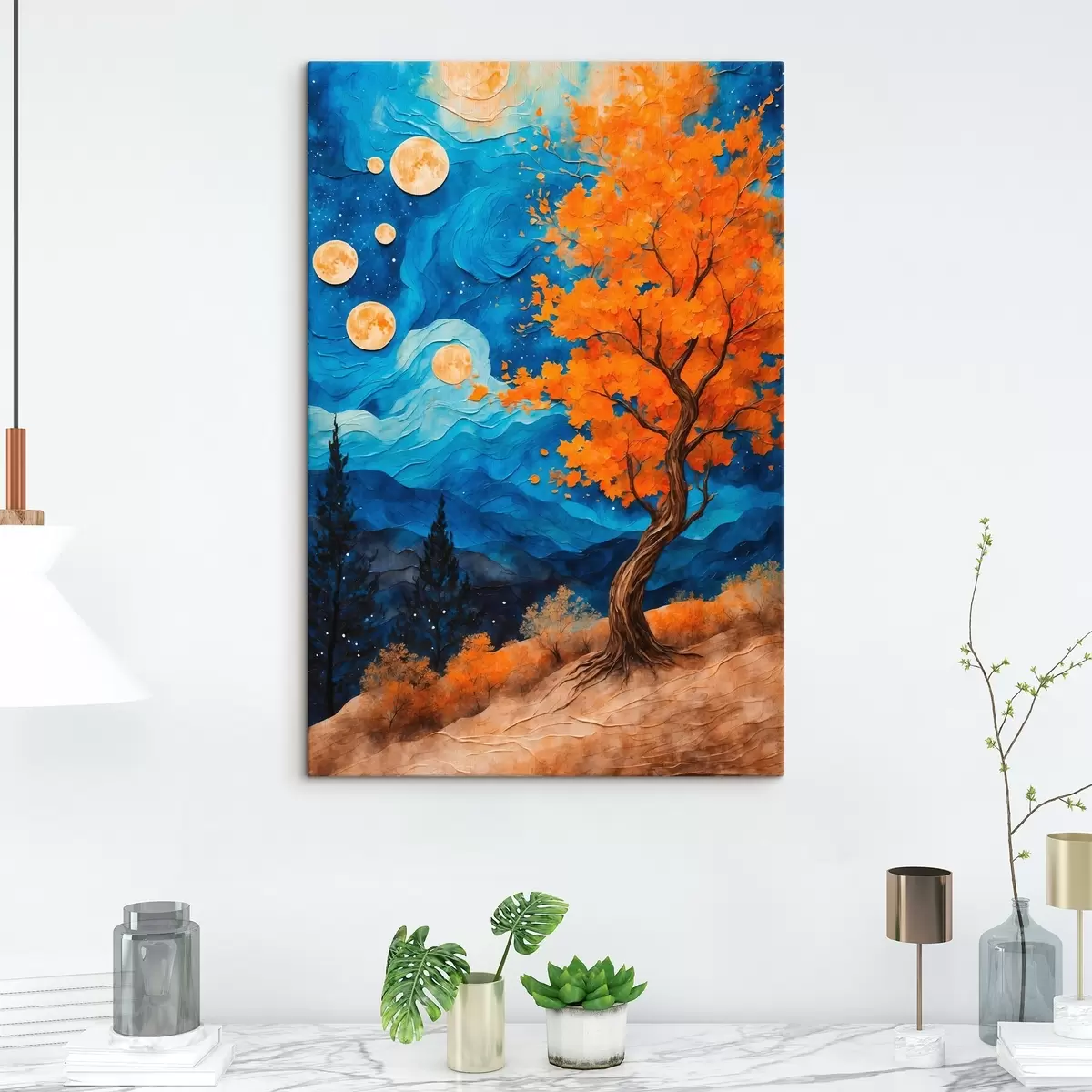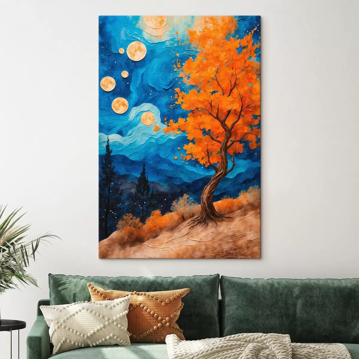 Vászonkép Dombon növő fa éjszaka Nr s42274