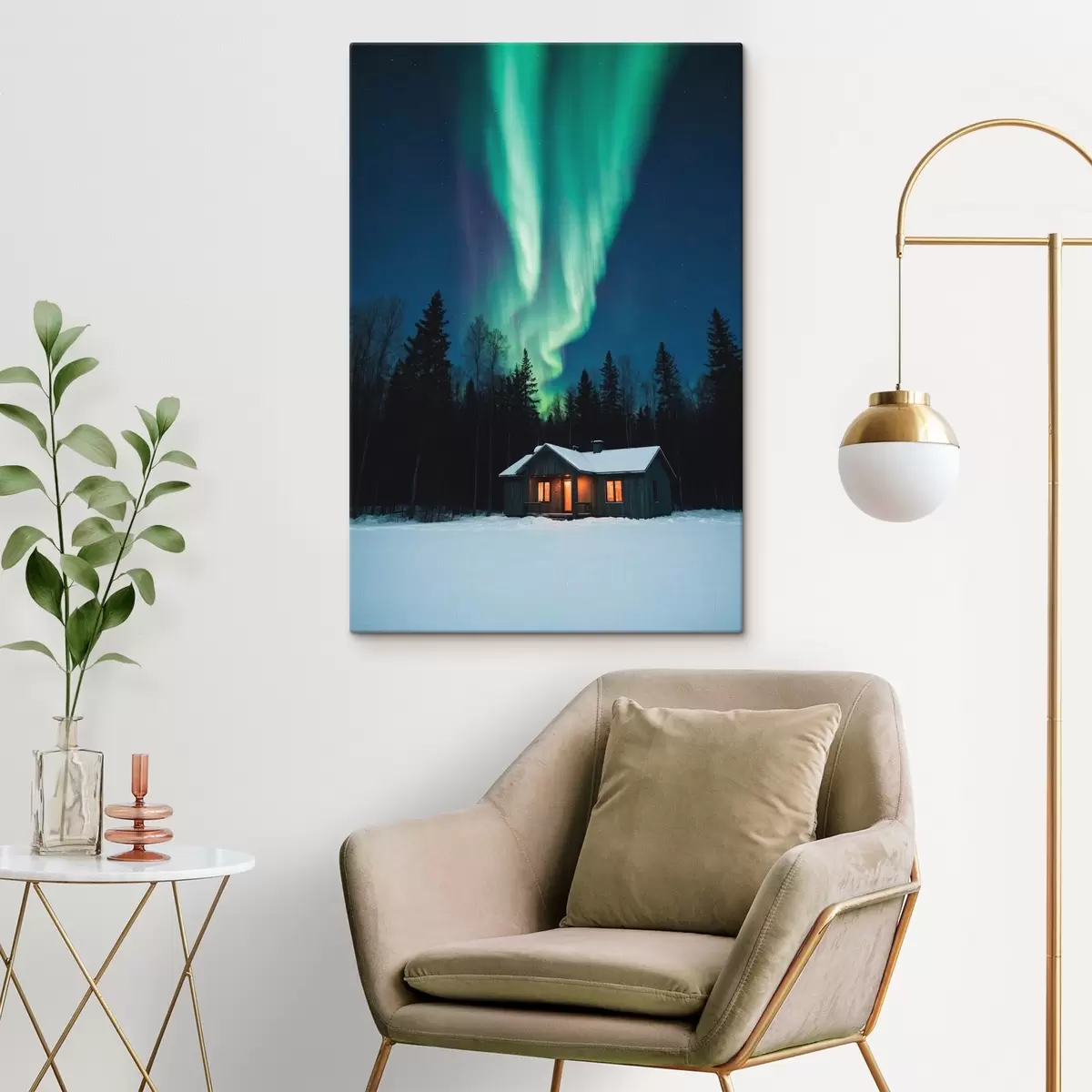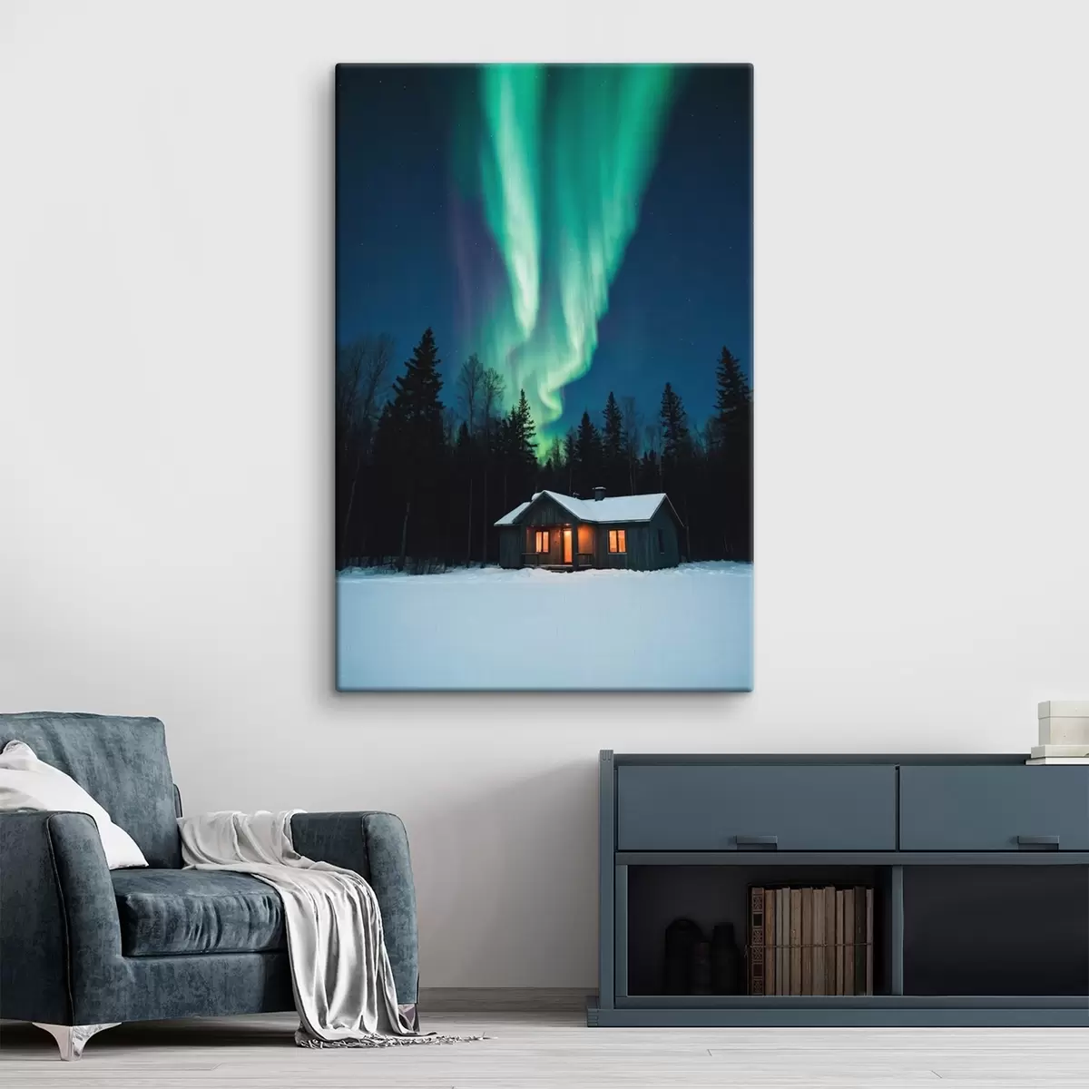 Vászonkép Kunyhó a téli erdőben Nr s42277