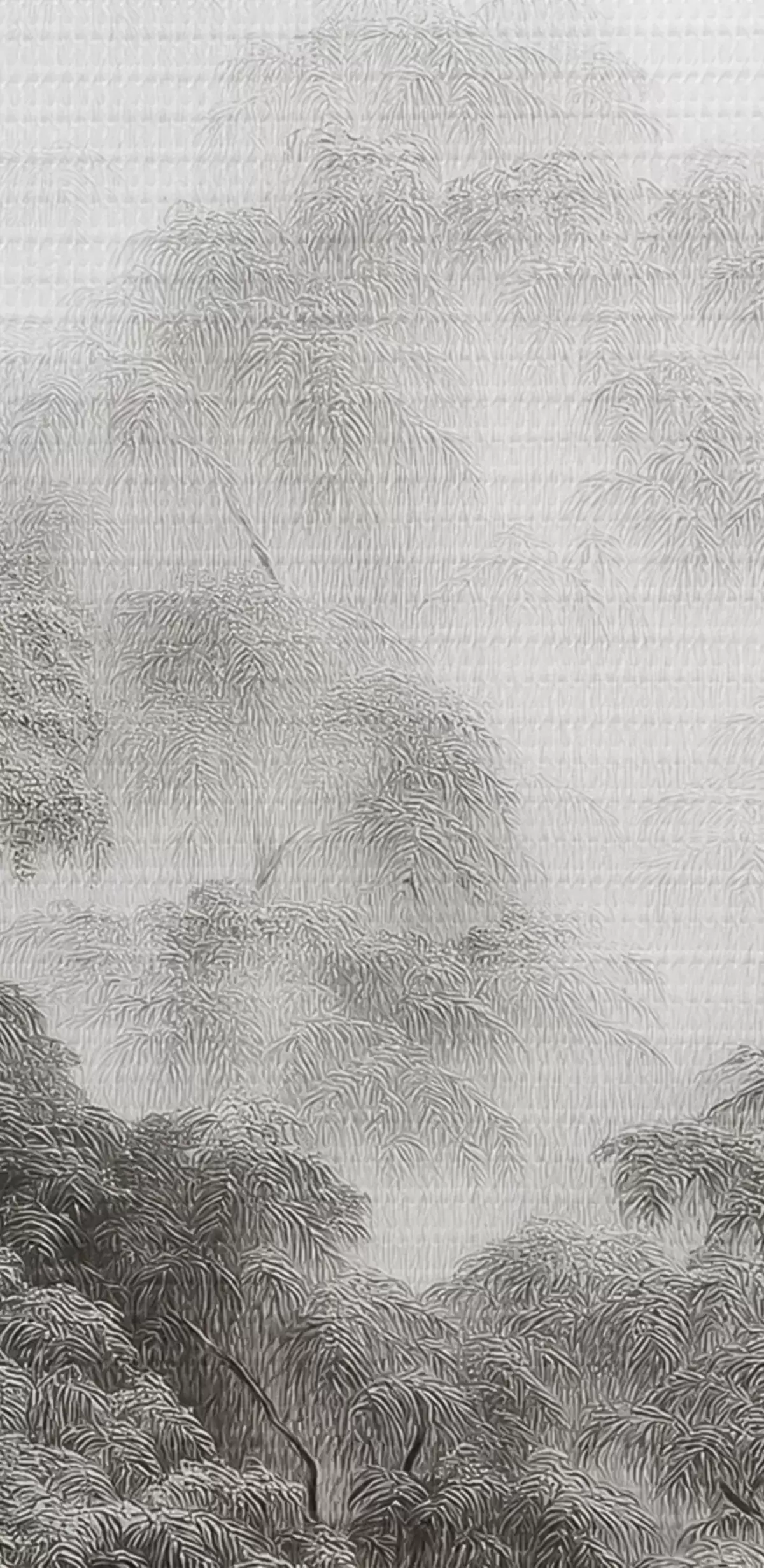 fotótapéta Trópusi erdő a ködben, pálmafák, szürke színek s42371v1