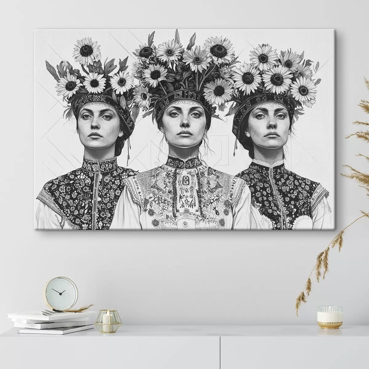 Vászonkép Ukrajnai nők etnikai zárójelben virágkoszorúkkal Nr s42379