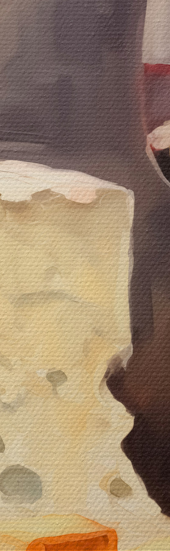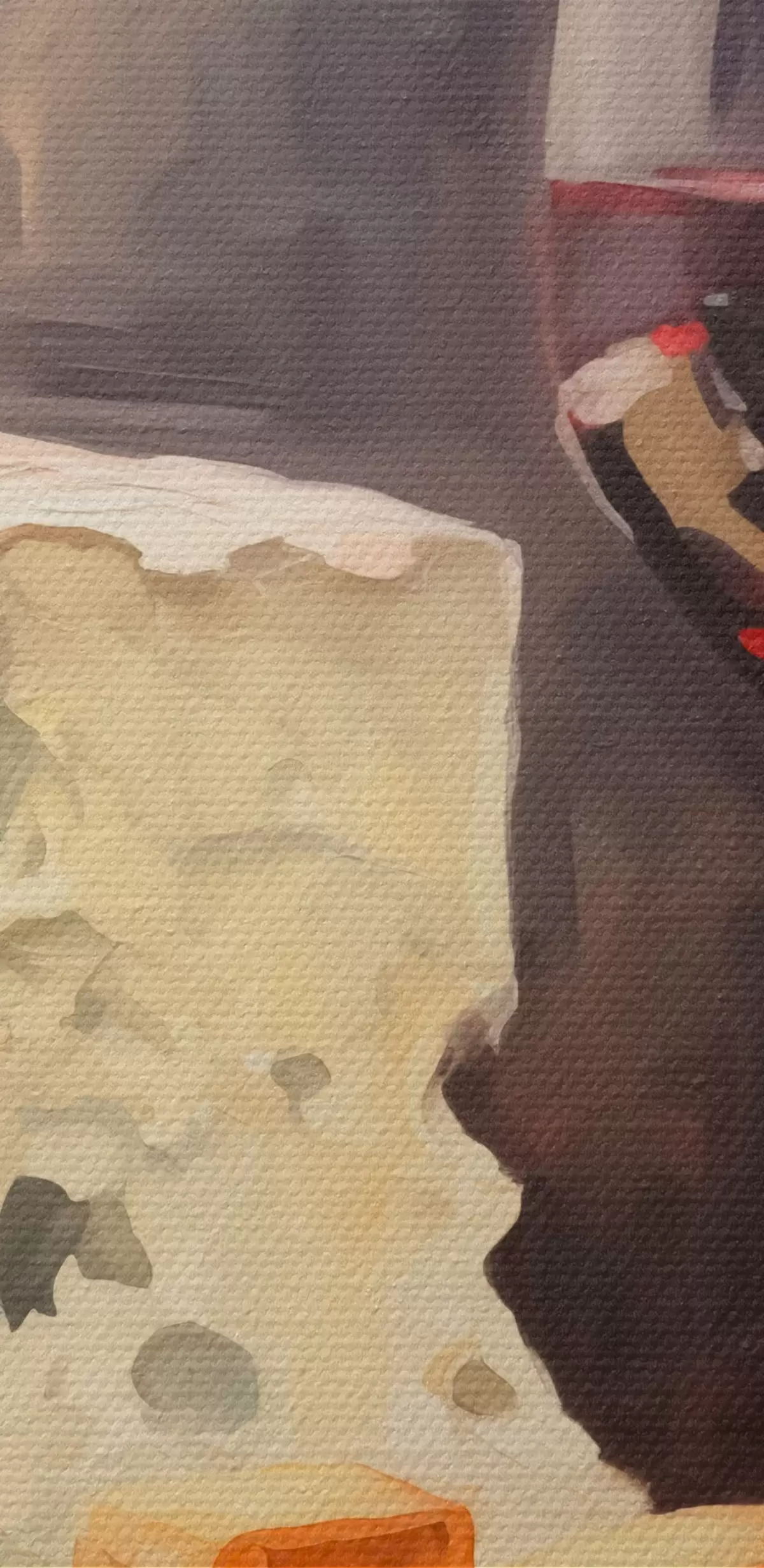 Vászonkép Egy pohár vörösbor és sajtok imitációs festménye Nr s42415