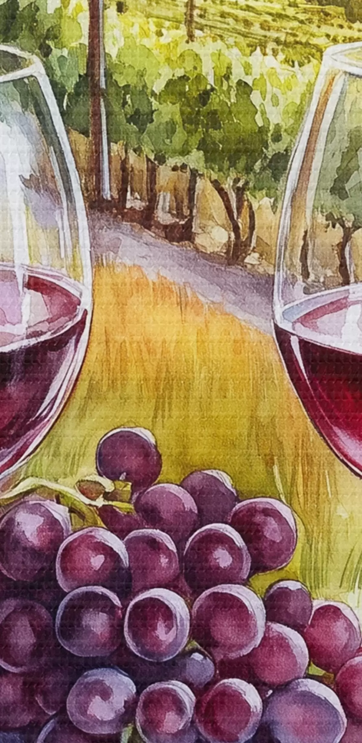 Vászonkép Toszkánai tájak, akvarell stílus, borospoharak, szőlő, naplemente Nr s42439