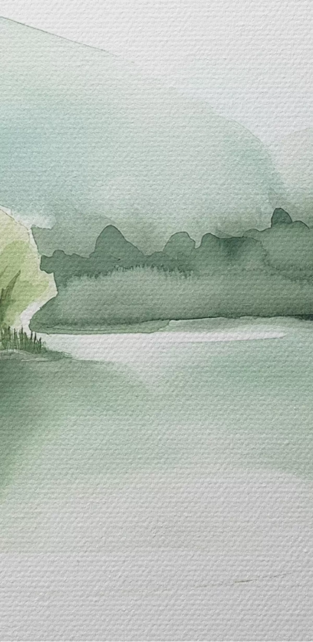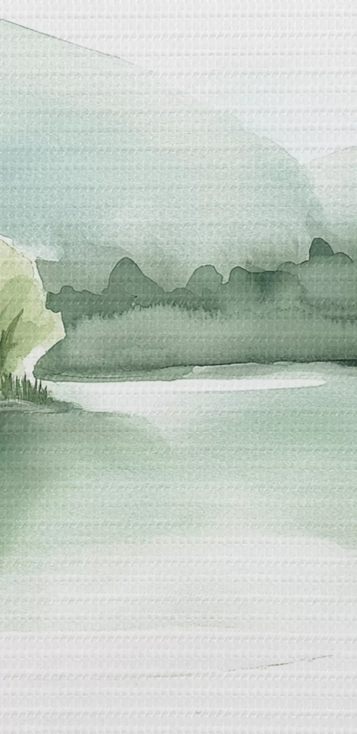 Vászonkép Akvarell stílusú nyári piknik, rusztikus, tó, zöld, ételkosárkák Nr s42452
