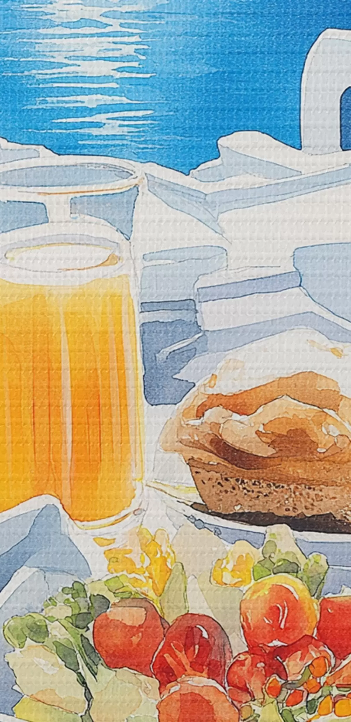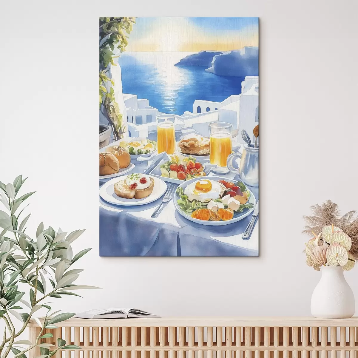 Vászonkép Szantorini tájak, reggeli, akvarell stílus, óváros, régi város Nr s42454