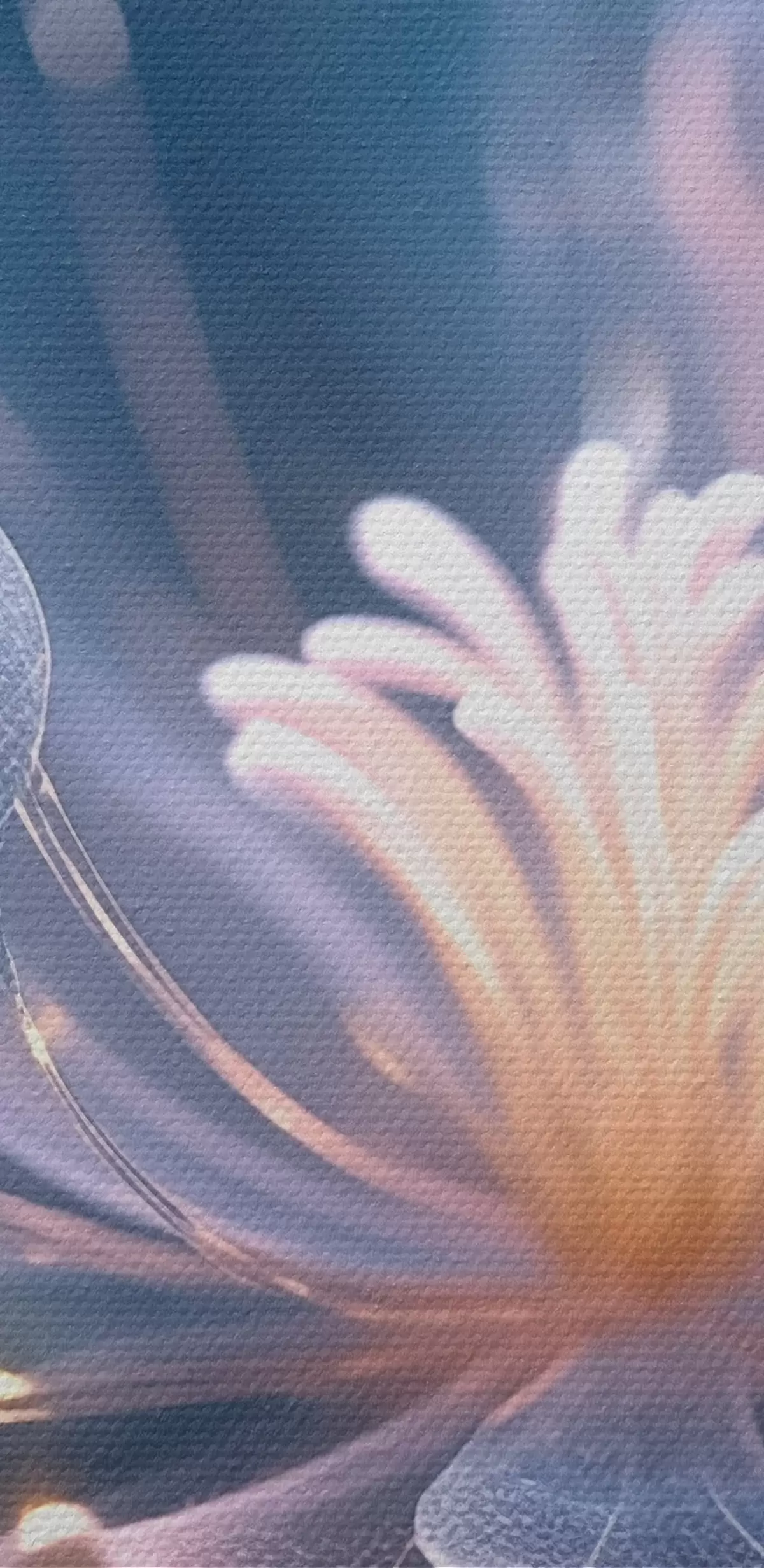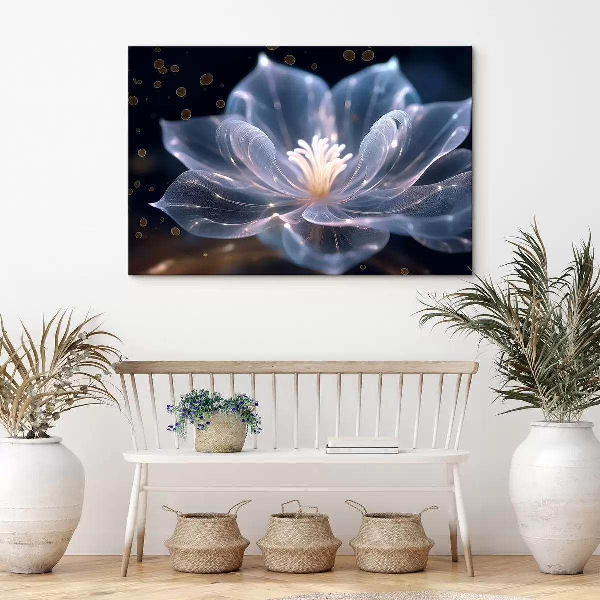 Vászonkép Világos virág átlátszó szirmokkal sötét háttéren Nr s42488